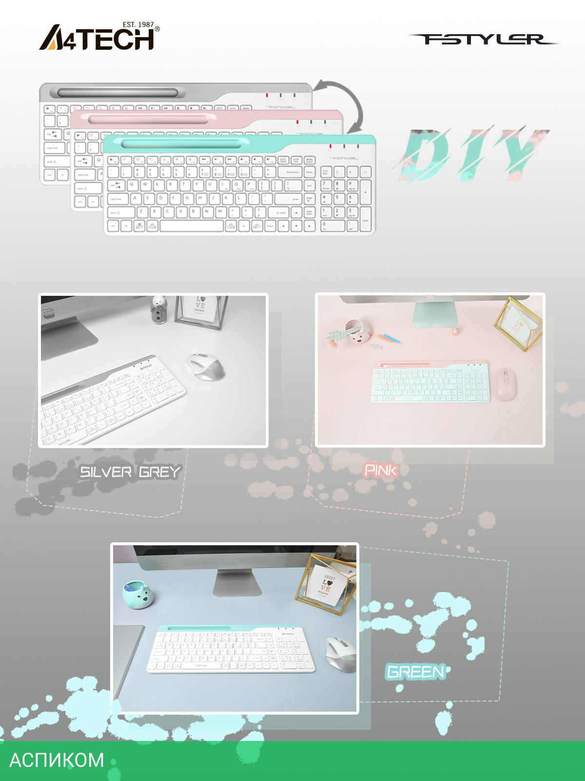 стандартная / для компьютеров Apple; для ПК; для устройств Android / Bluetooth; радио / белый; серый / мембранная / да / нет / да / пластик / да