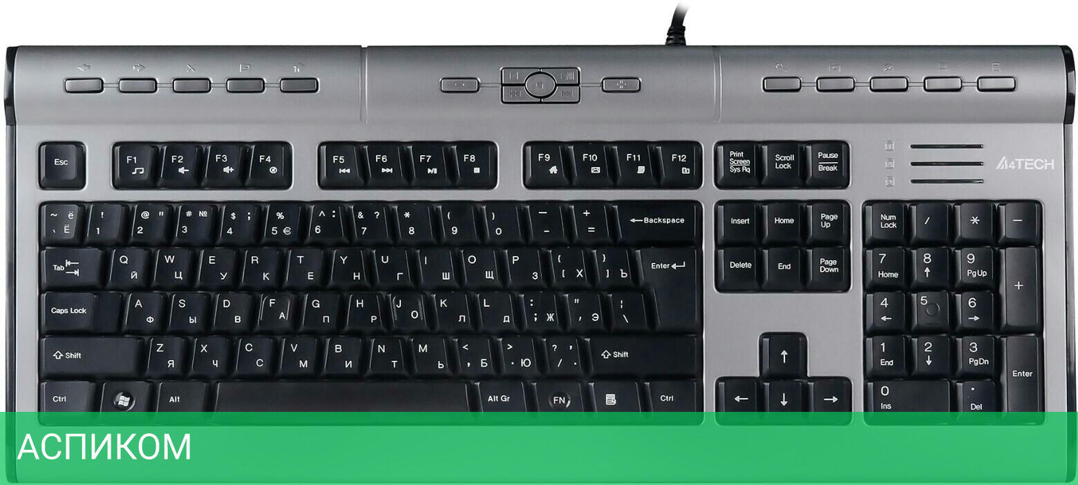 черный; серый / мультимедийная / для ПК / USB / мембранная / нет / нет / да / пластик / да