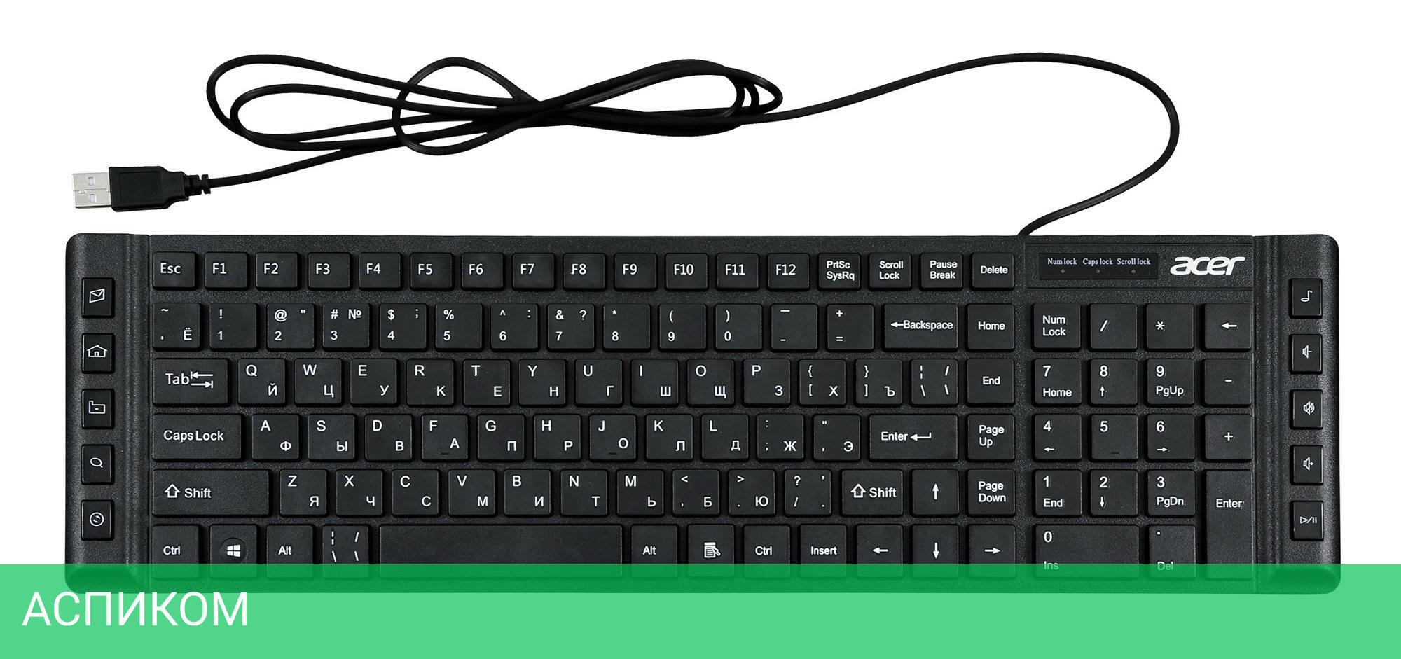 черный / офисная / для ПК / USB / мембранная / нет / нет / да / пластик / да
