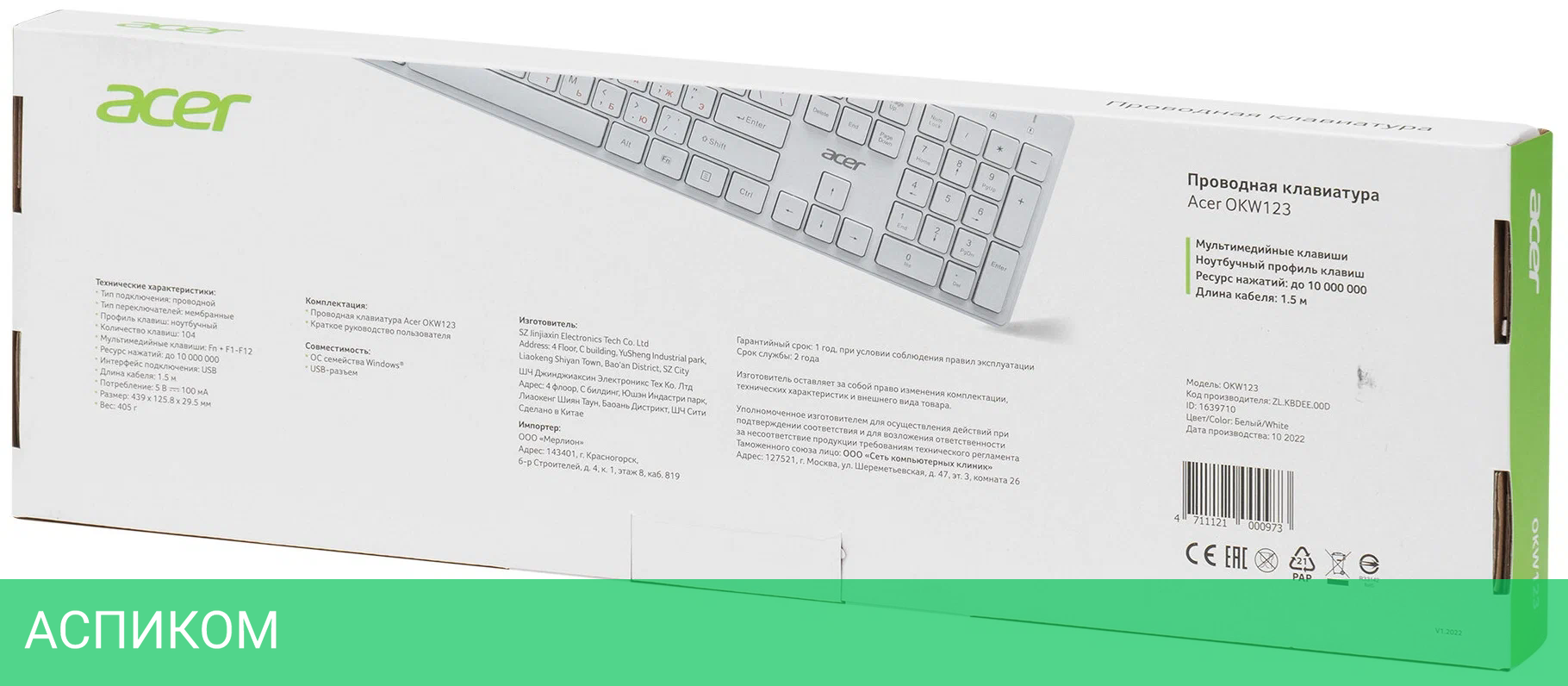 клавиатура, документация, упаковка