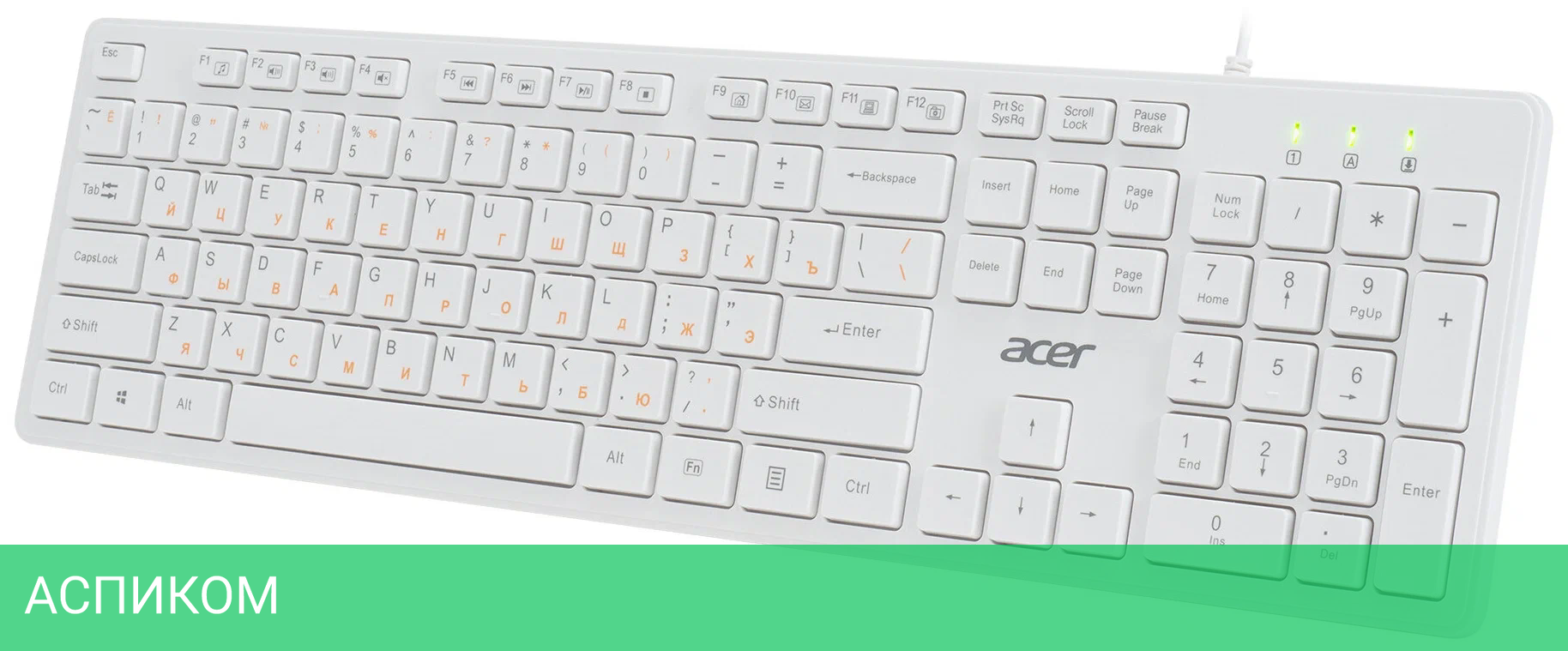 стандартная / для ПК / USB / белый / мембранная / нет / нет / да / пластик / да