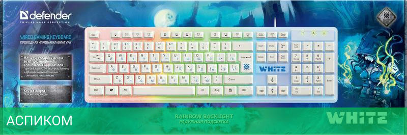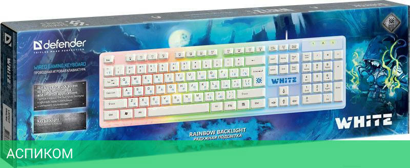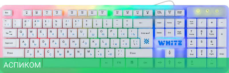 белый / игровая / для ПК / USB / мембранная / нет / да / да / пластик / да