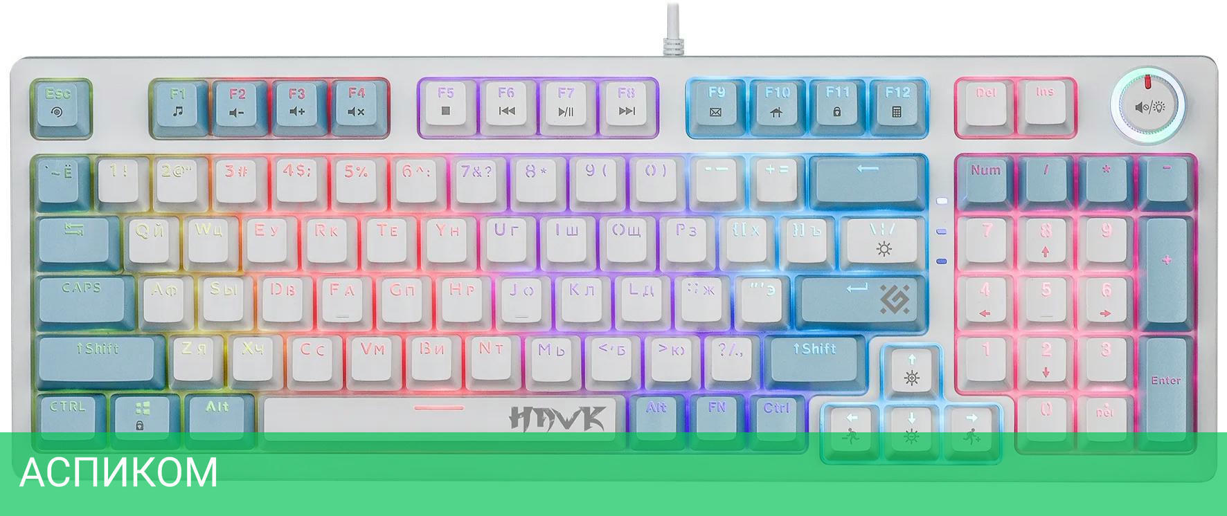 белый; голубой / игровая / для ПК / USB / механическая / нет / да / да / пластик / да