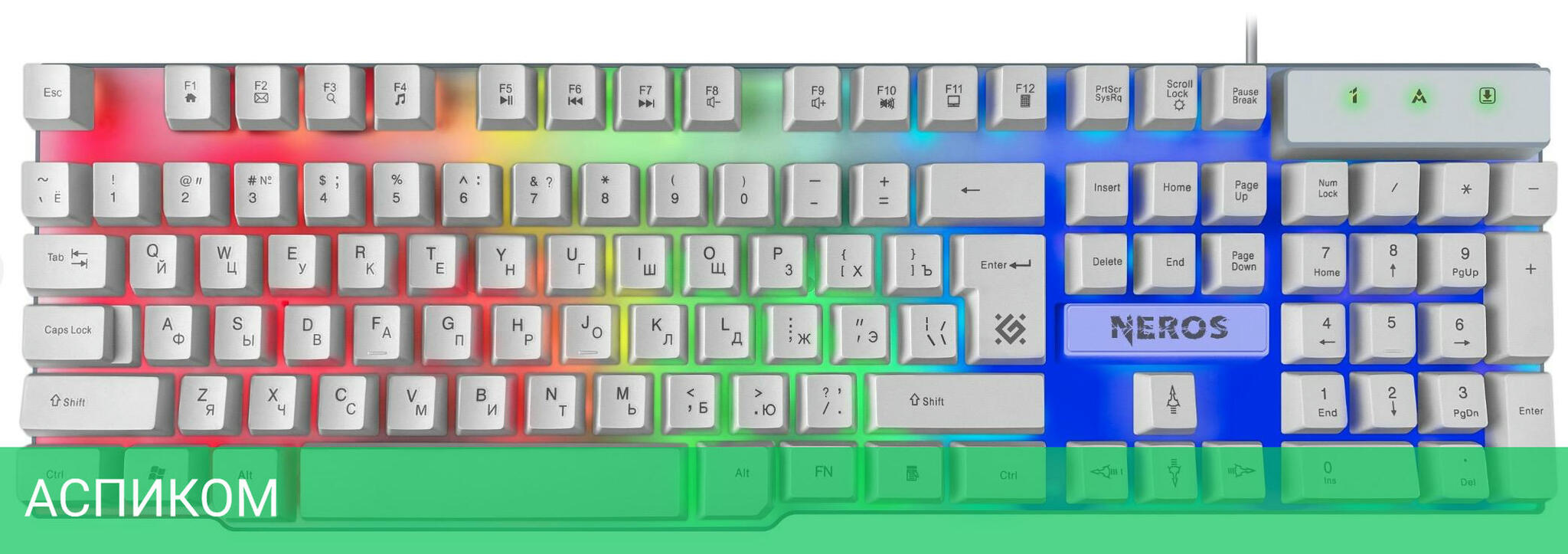 белый / игровая / для ПК / USB / мембранная / нет / да / да / пластик / да