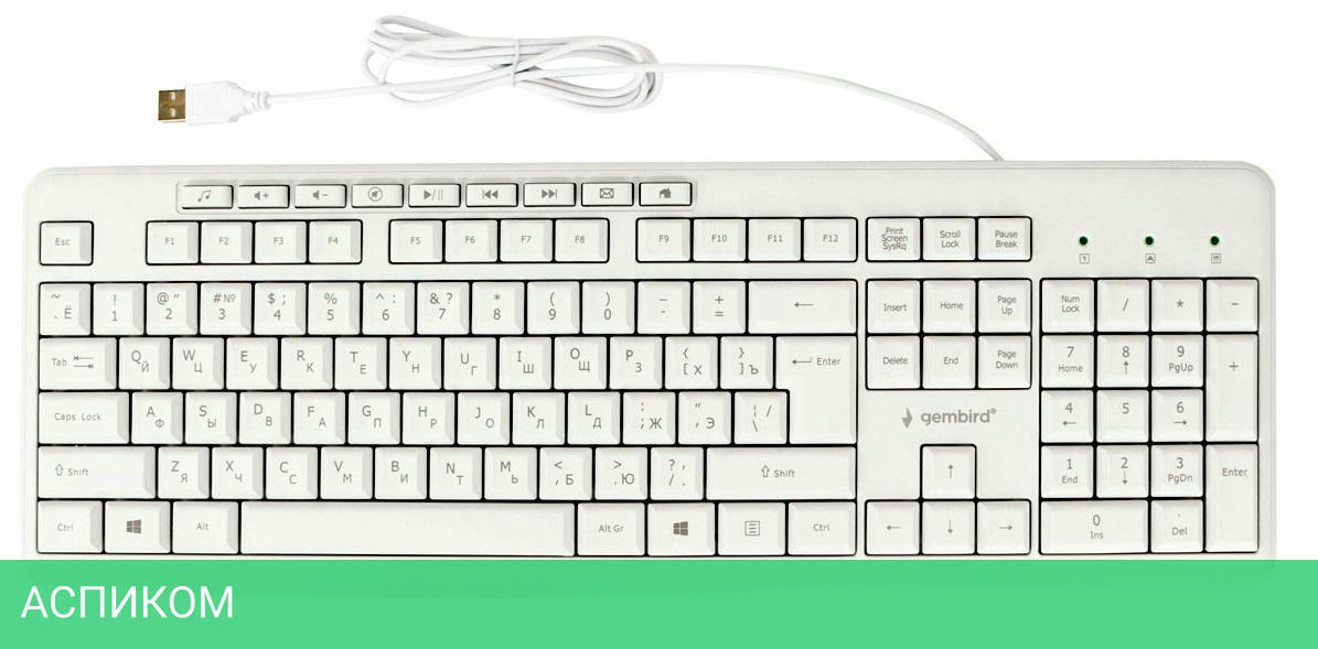 стандартная / для ПК / USB / белый / мембранная / нет / нет / да / пластик / нет
