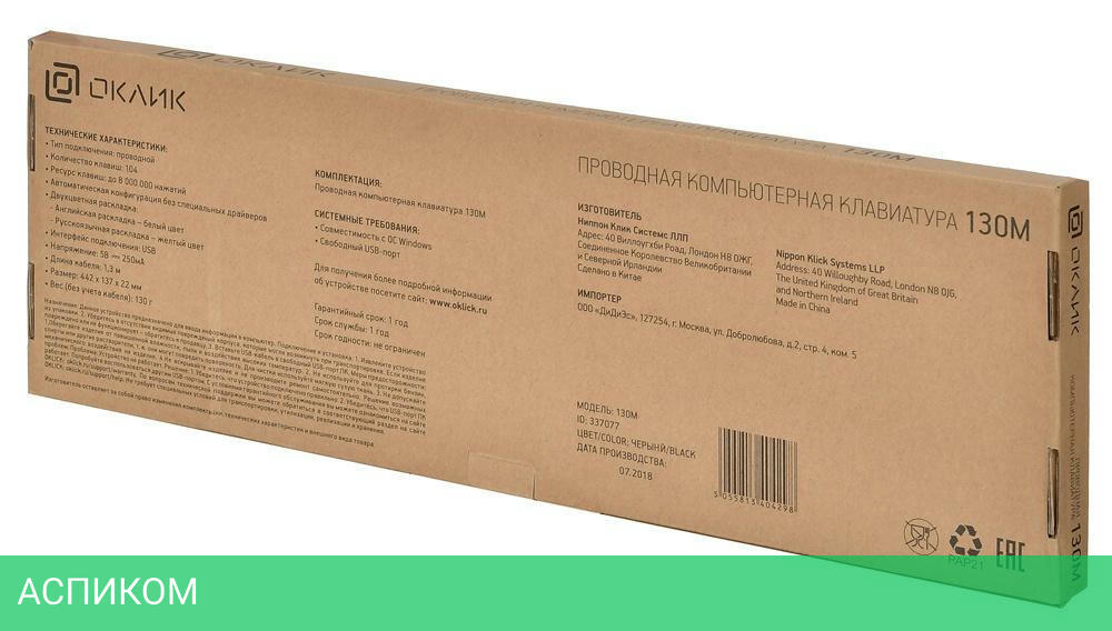 стандартная / для ПК / USB / черный / мембранная / нет / нет / да / пластик / да