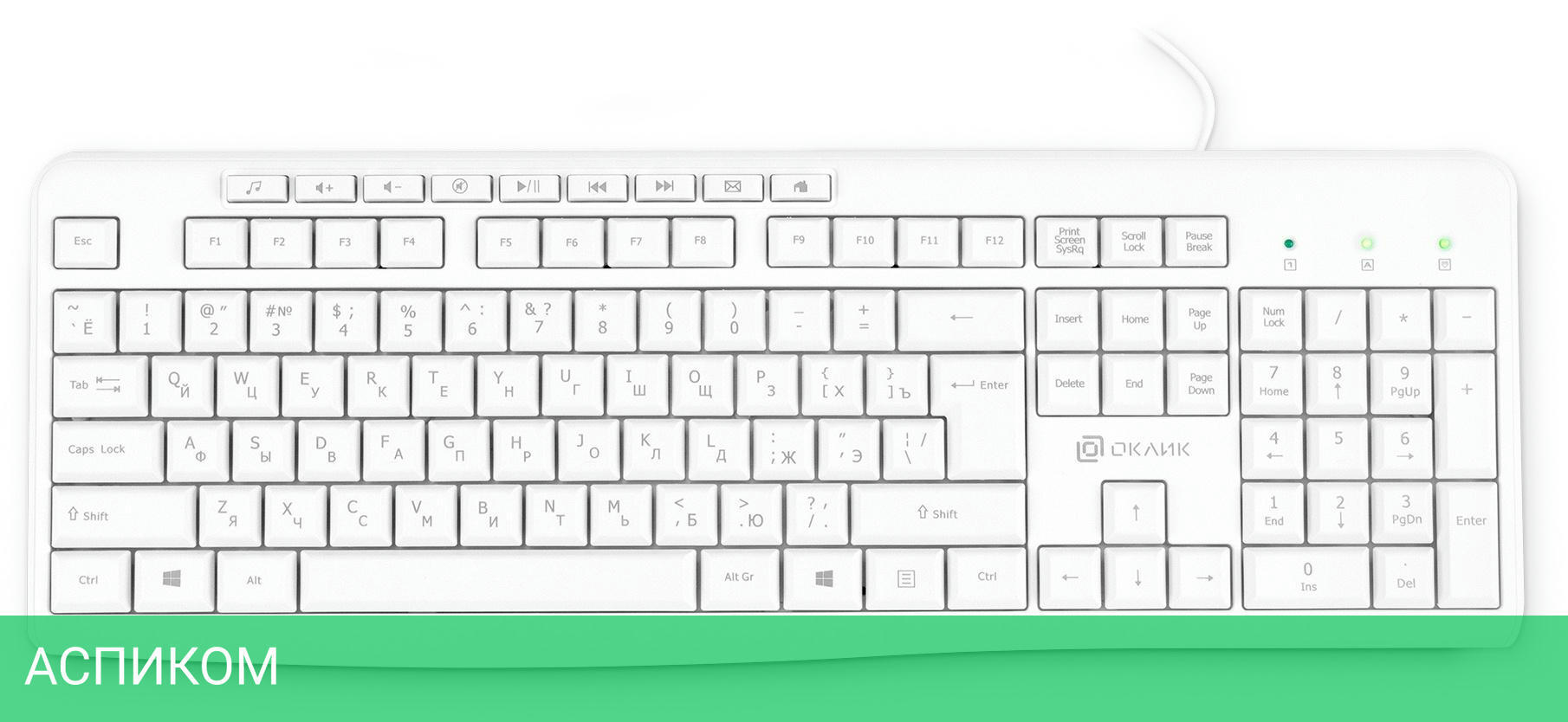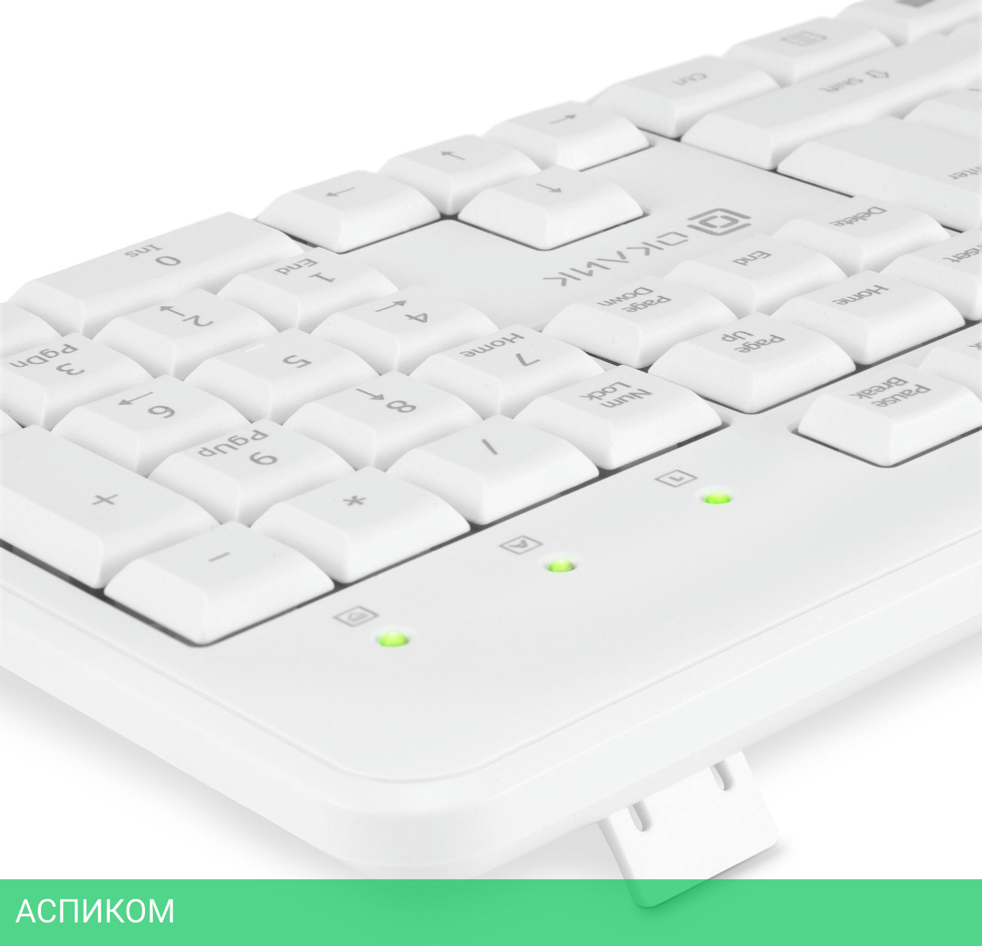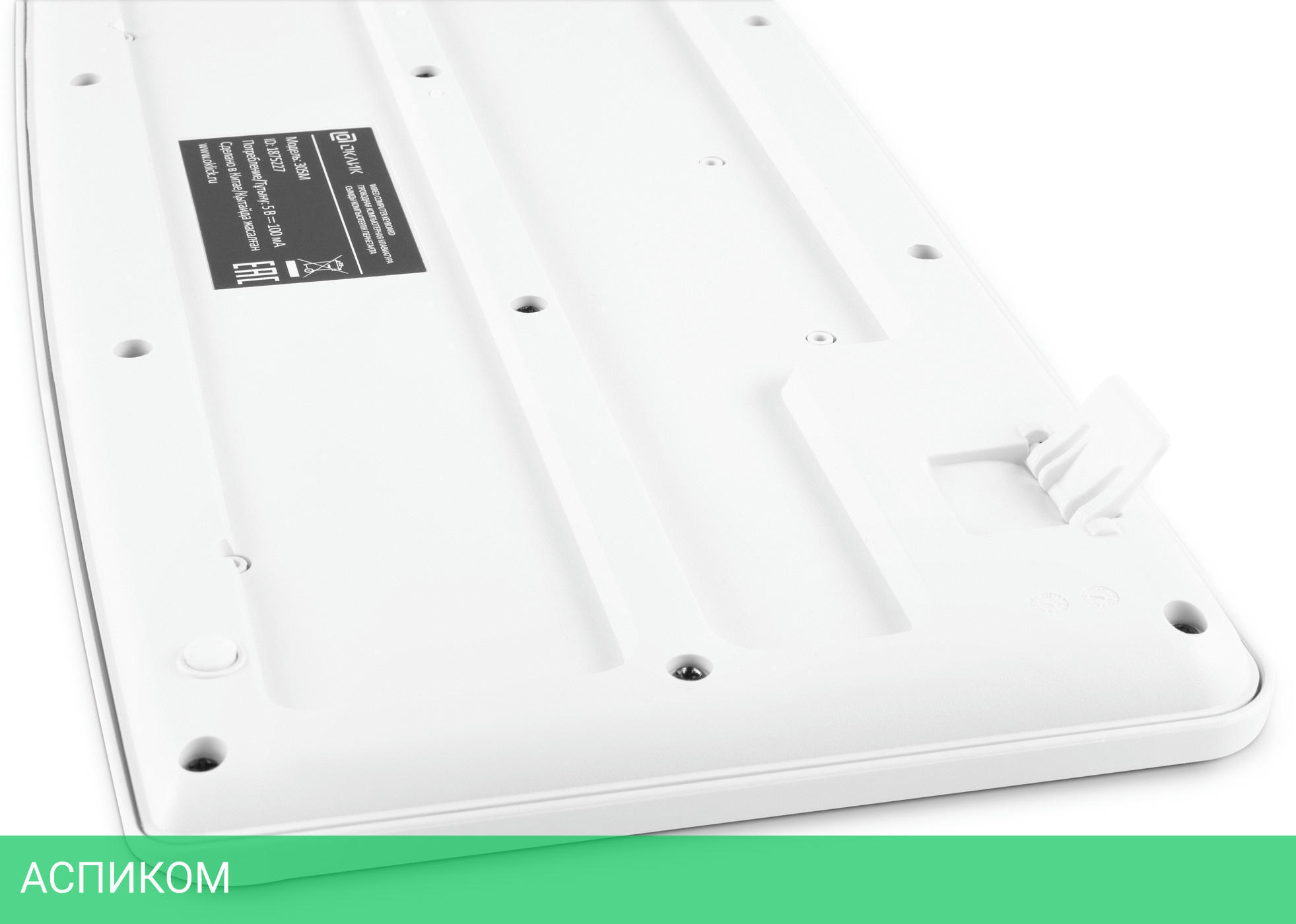 стандартная / для ПК / USB / белый / мембранная / нет / нет / да / пластик / да