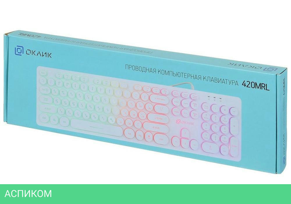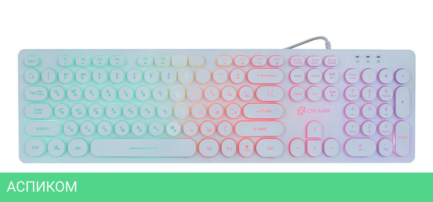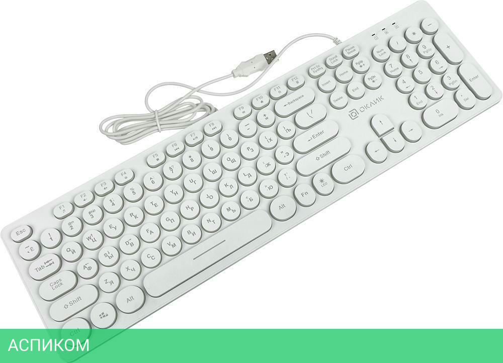 стандартная / для ПК / USB / белый / мембранная / нет / да / да / пластик / да