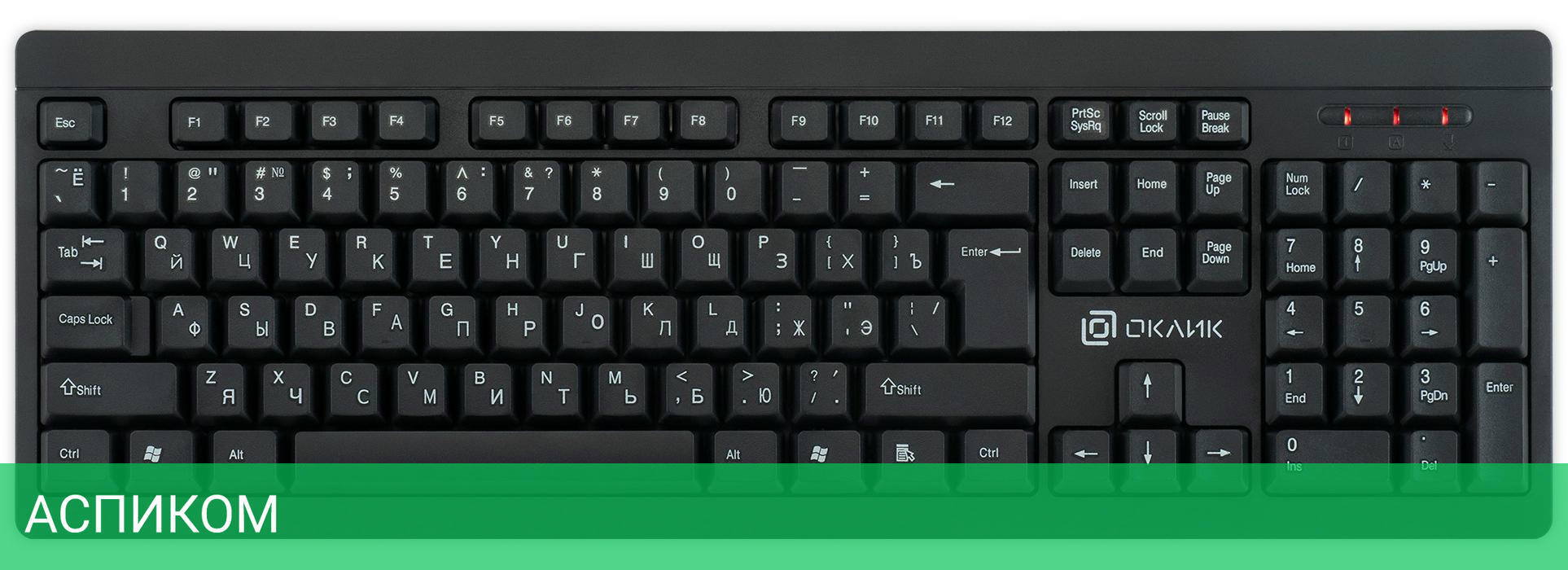 клавиатура, ресивер, 1 батарейка АА, руководство