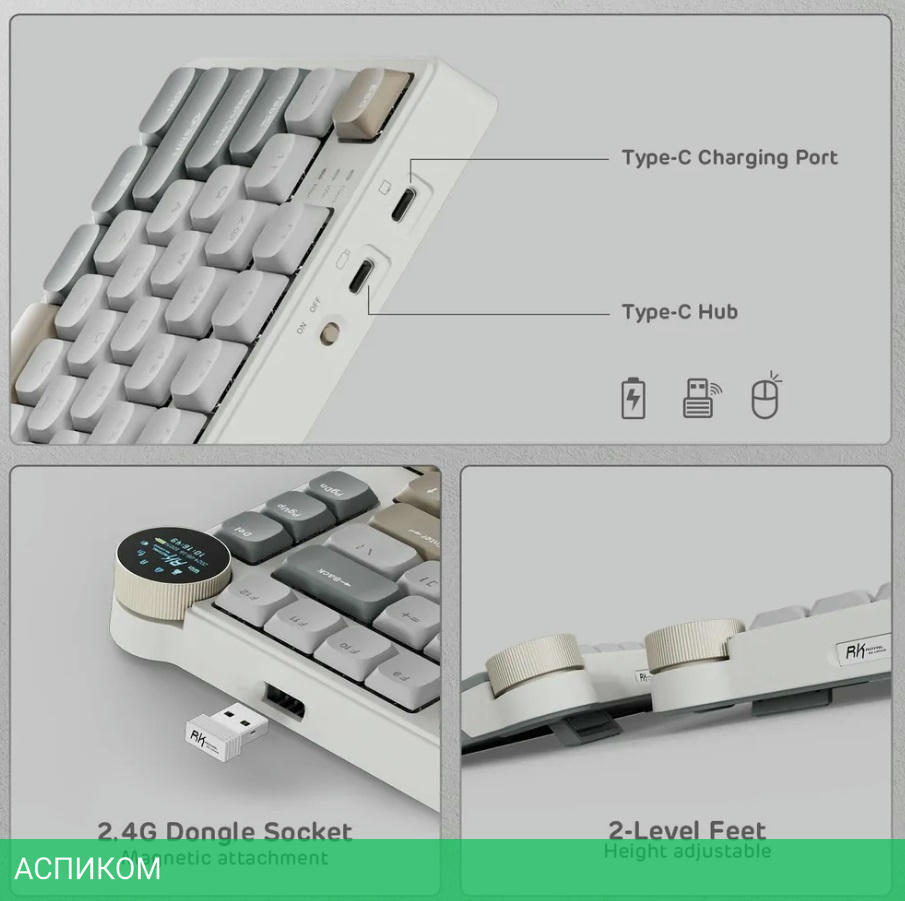 клавиатура, 4 сменных переключателя, кабель USB Type-C - USB Type-A/Type-C, пуллер для кейкапов и переключателей, документация, упаковка