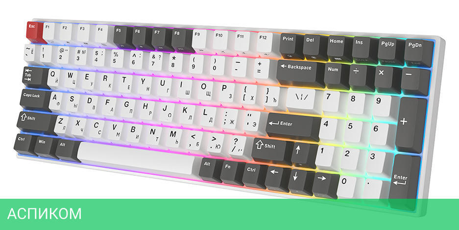 клавиатура, прибор для смены свитчей, свитчи 4 шт, съёмный кабель, руководство пользователя, упаковка