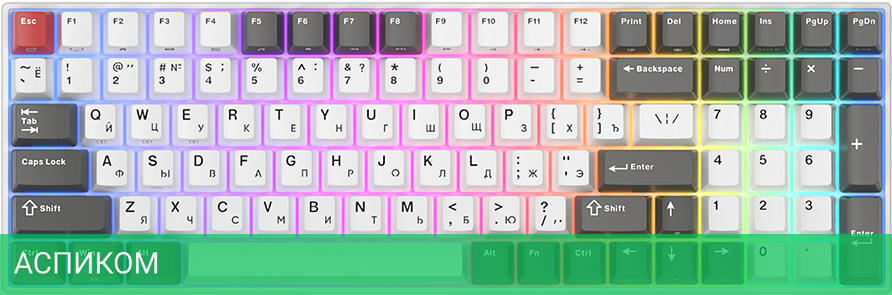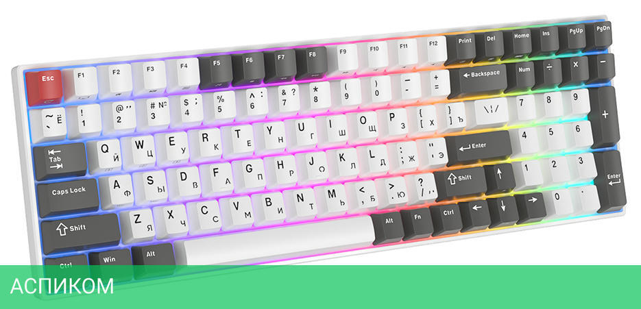 клавиатура, прибор для смены свитчей, свитчи 4 шт, съёмный кабель, руководство пользователя, упаковка