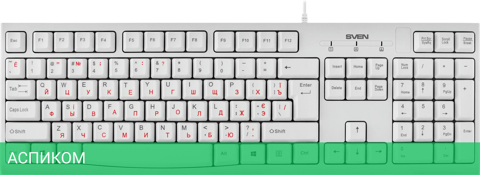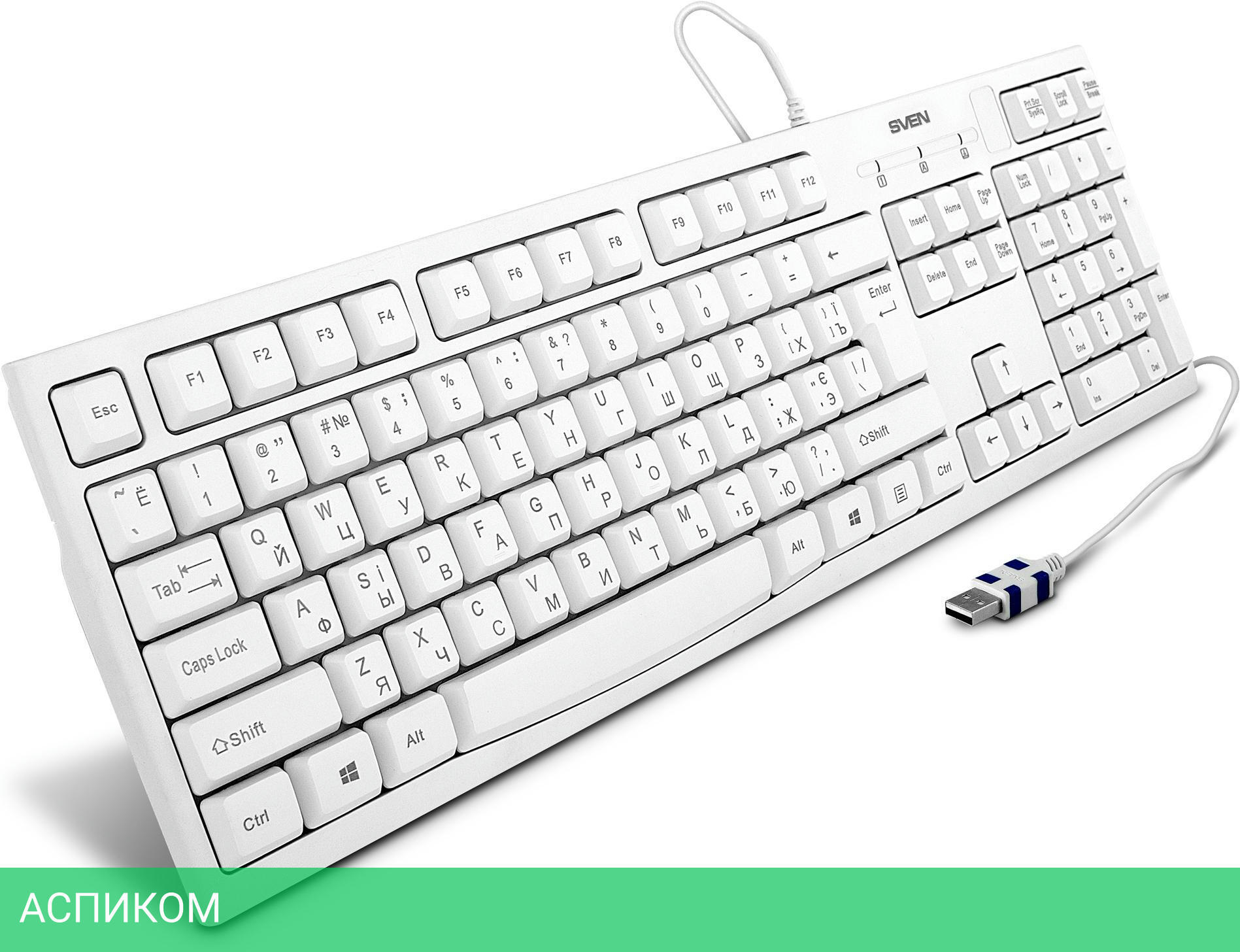 стандартная / для ПК / USB / мембранная / нет / нет / да / пластик / белый