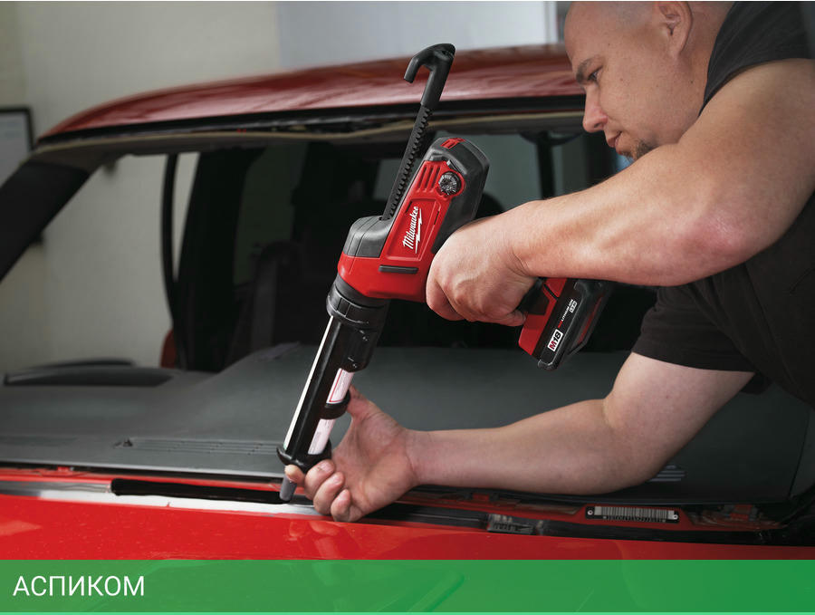 клеевой пистолет; держатель картриджа, 310 мл; 1 аккумулятор (Li-Ion, 18В, 2 Ач); зарядное устройство (40 минут); сумка; инструкция по эксплуатации; гарантийный талон