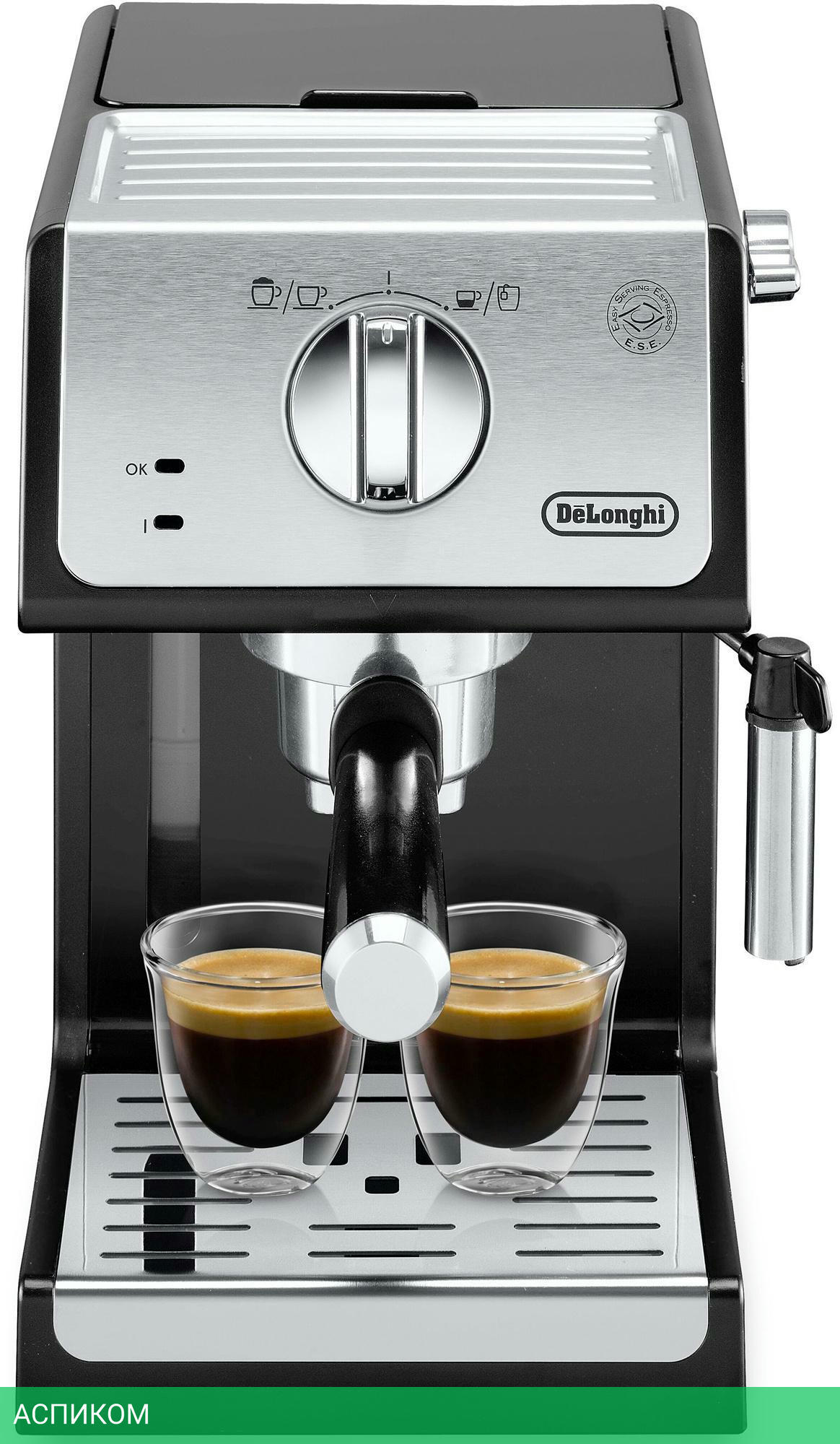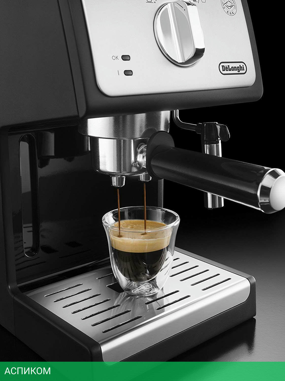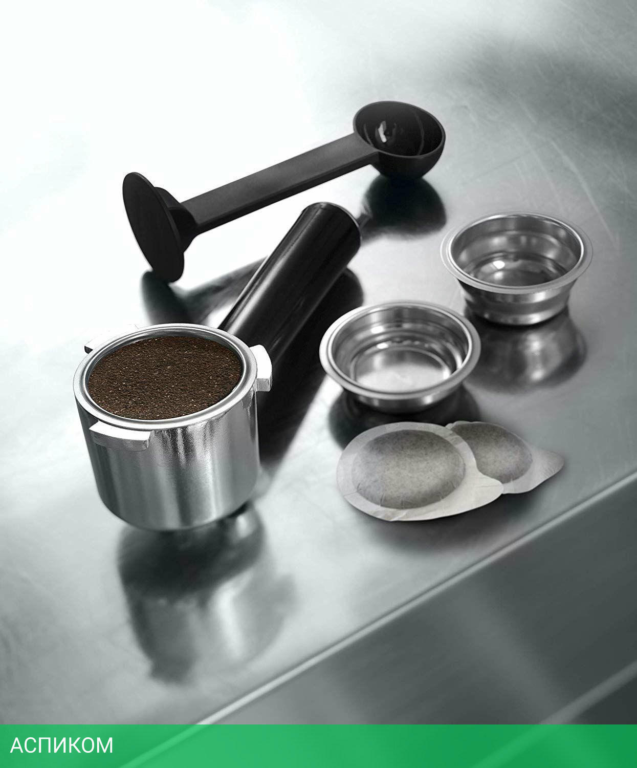 рожковая помповая кофеварка / бойлер / бытовое / свободностоящее / от сети / 1100.0 / молотый / нет / да / пластик / черный; серебристый