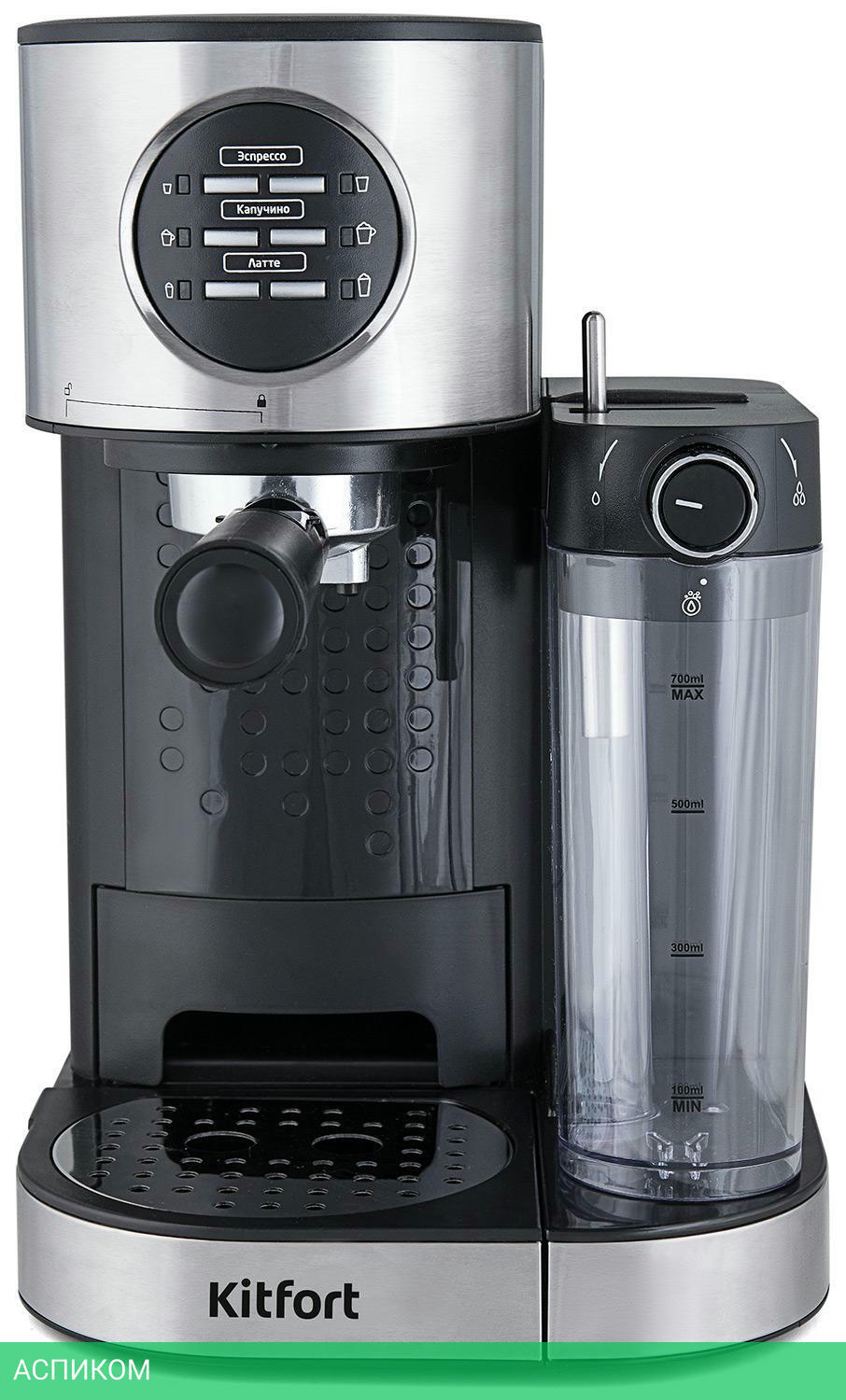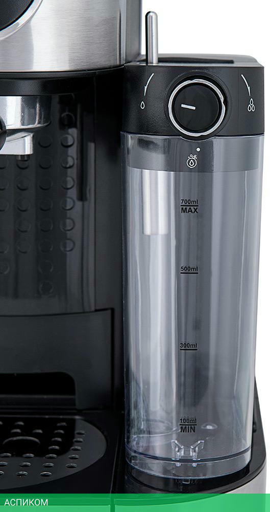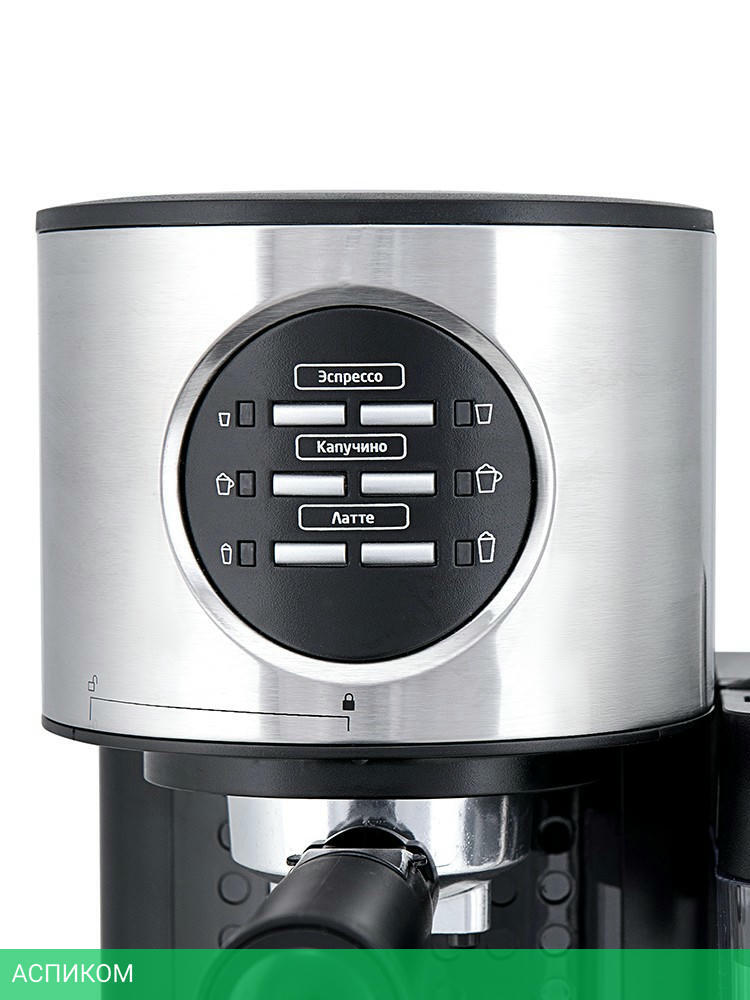 рожковая помповая кофеварка / бойлер / черный; нержавеющая сталь / бытовое / свободностоящее / от сети / 1470.0 / молотый / нет / да / пластик; металл