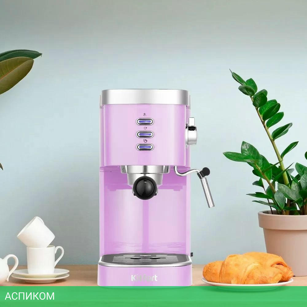 рожковая помповая кофеварка / бытовое / свободностоящее / от сети / сиреневый / 1250.0 / молотый / нет / да / пластик