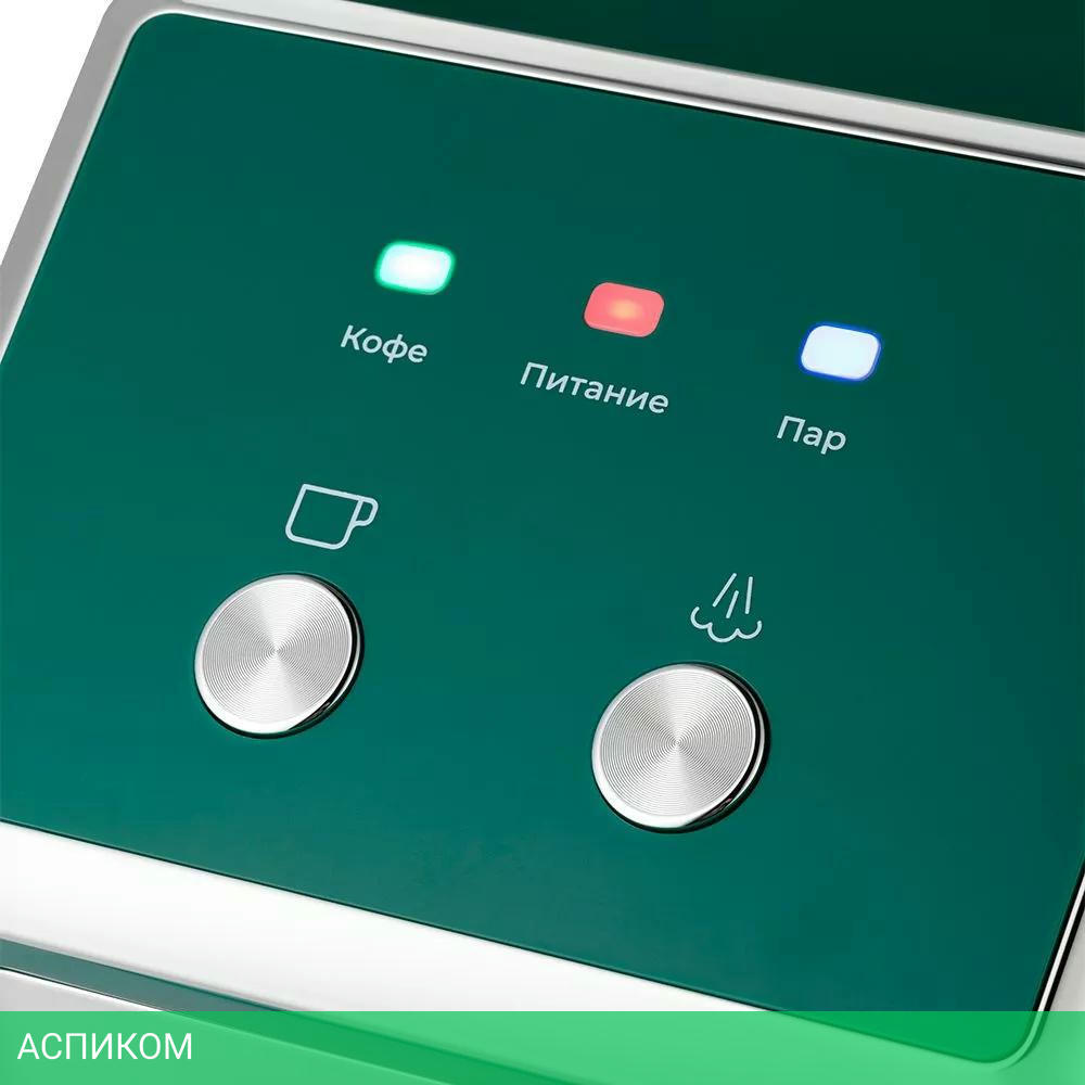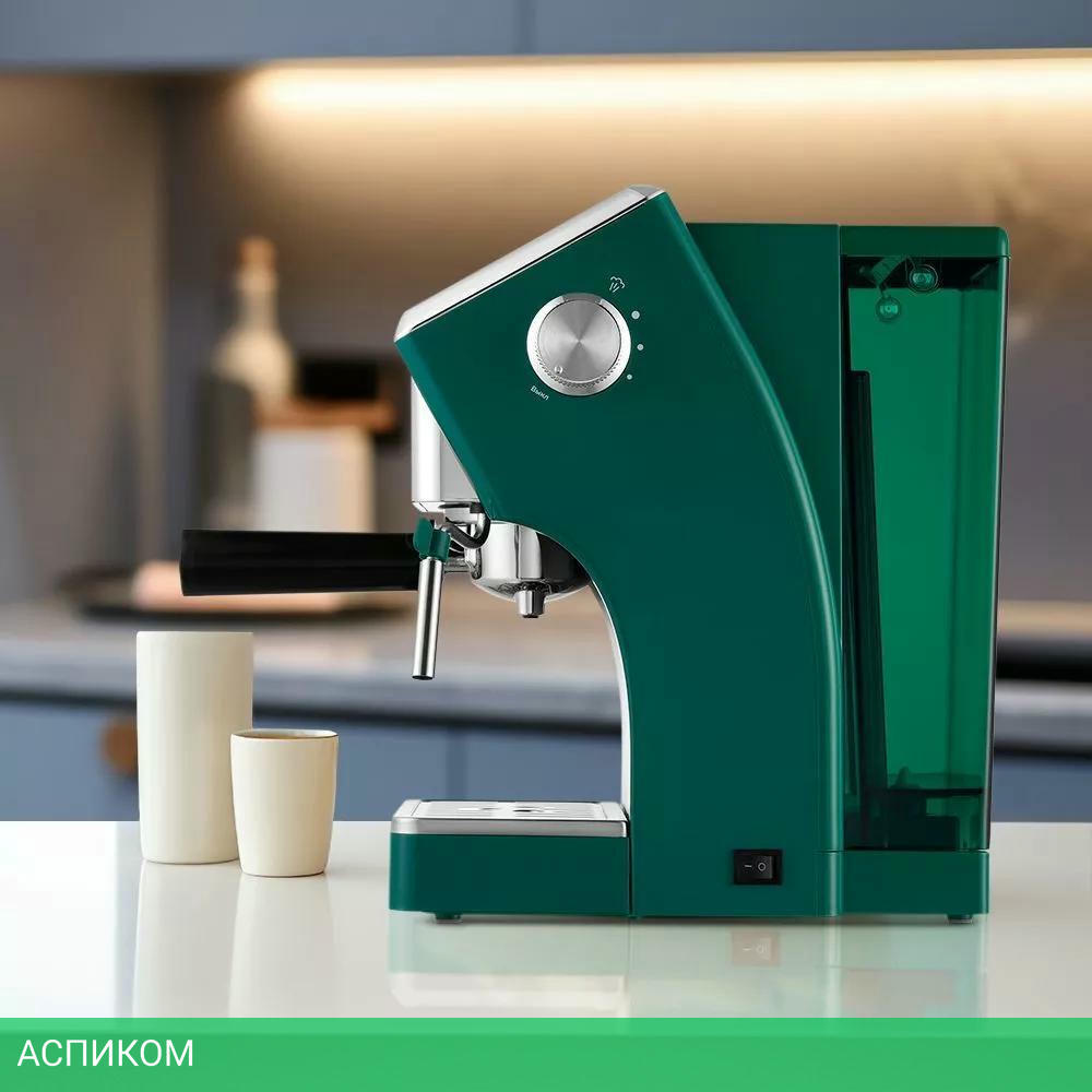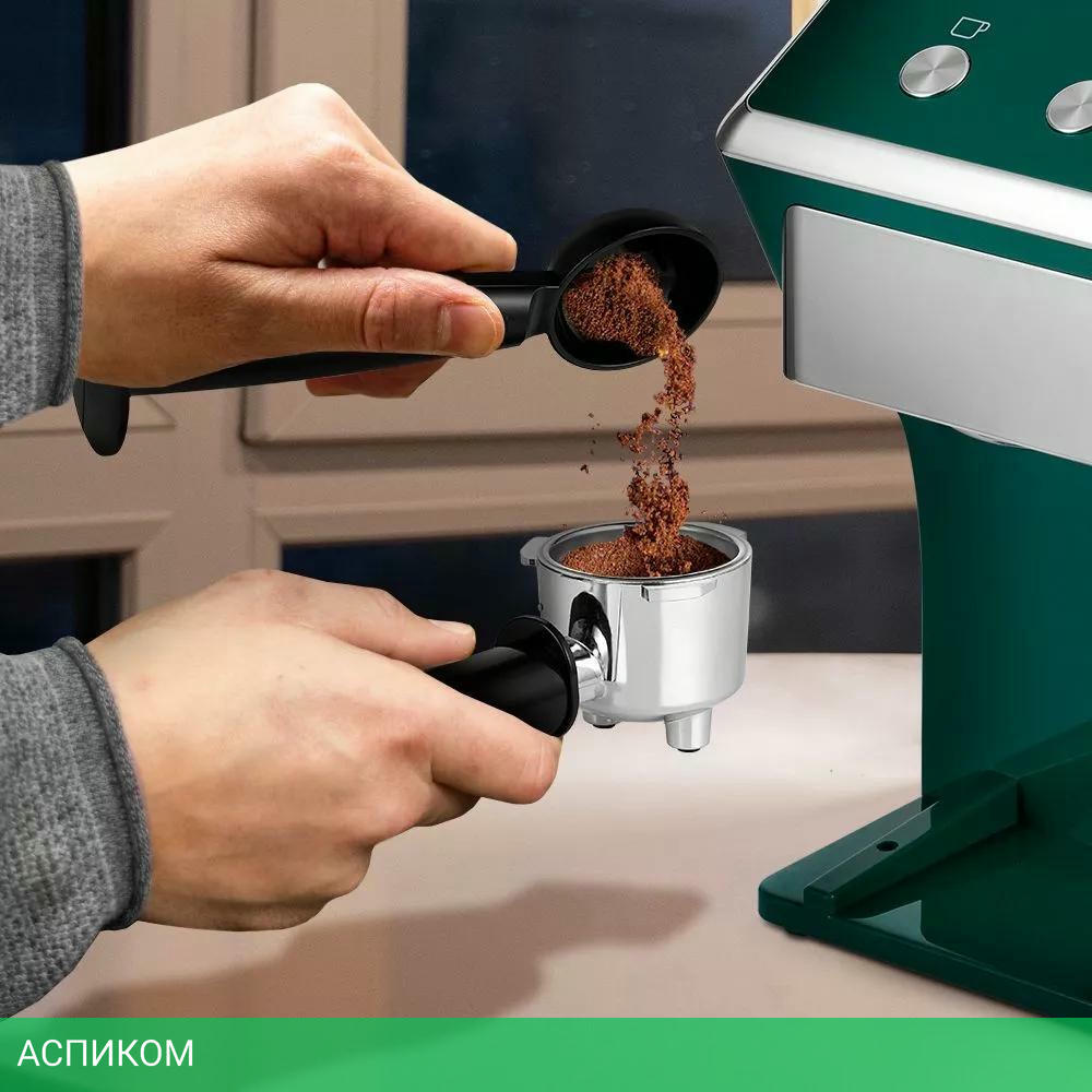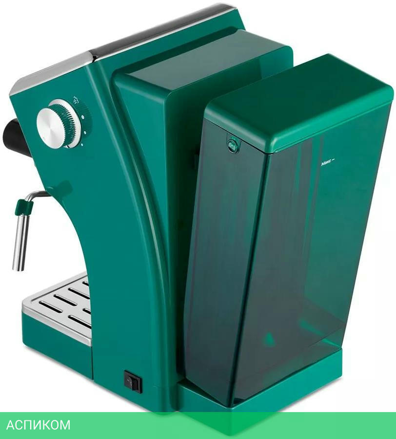 рожковая бойлерная кофеварка / бойлер / зеленый / бытовое / свободностоящее / от сети / 1050.0 / молотый / нет / да / пластик; металл