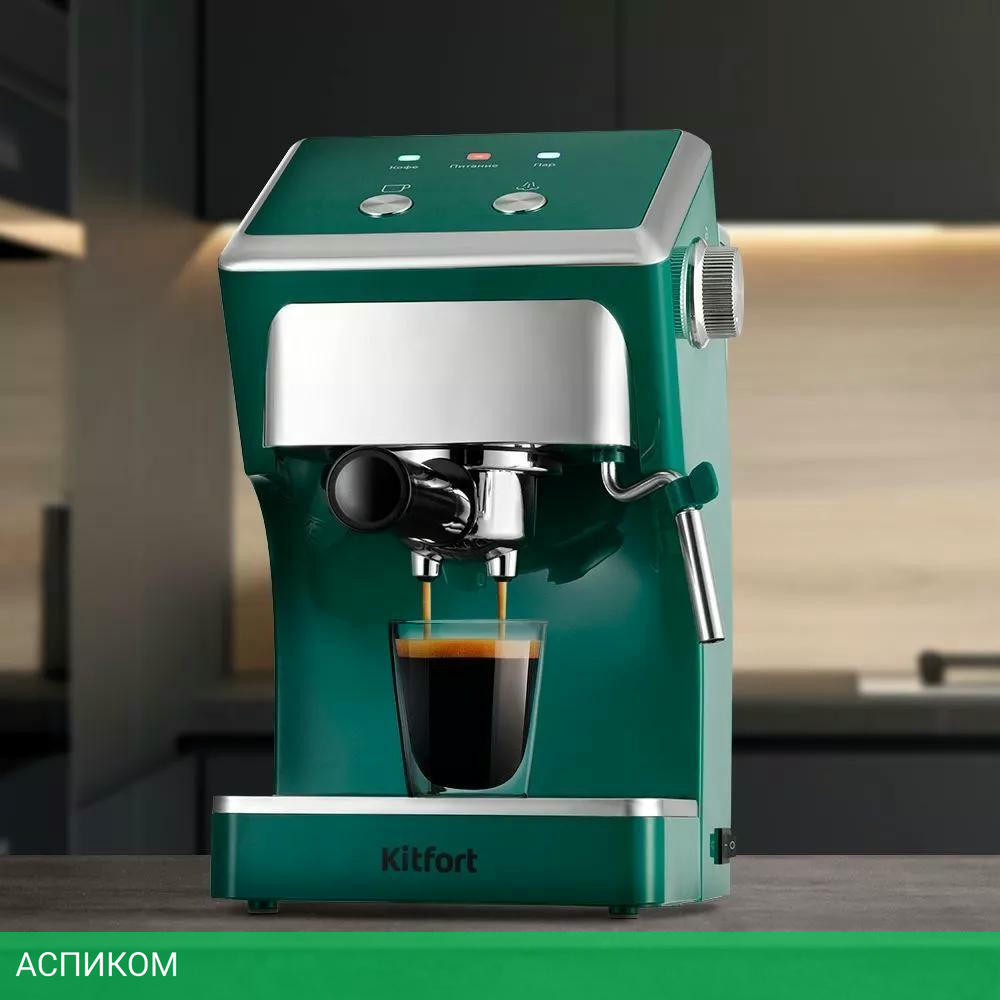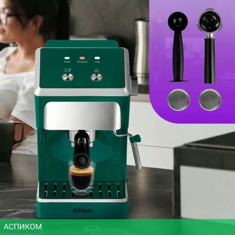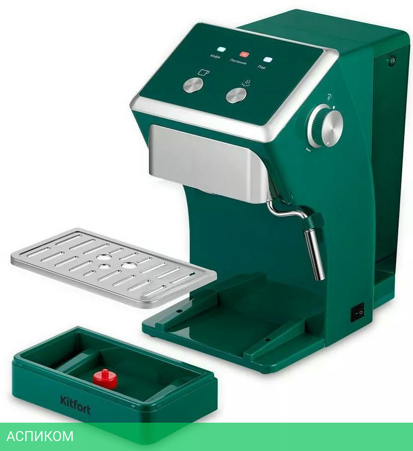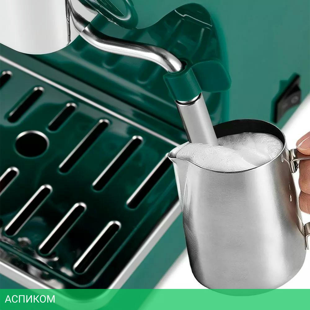 рожковая бойлерная кофеварка / бойлер / зеленый / бытовое / свободностоящее / от сети / 1050.0 / молотый / нет / да / пластик; металл