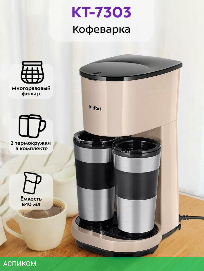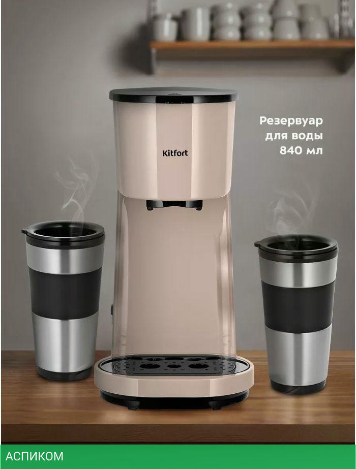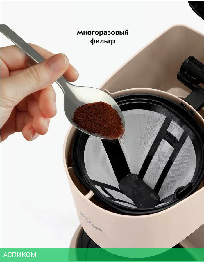 капельная кофеварка / бойлер / бытовое / от сети / бежевый / 800.0 / молотый / нет / пластик