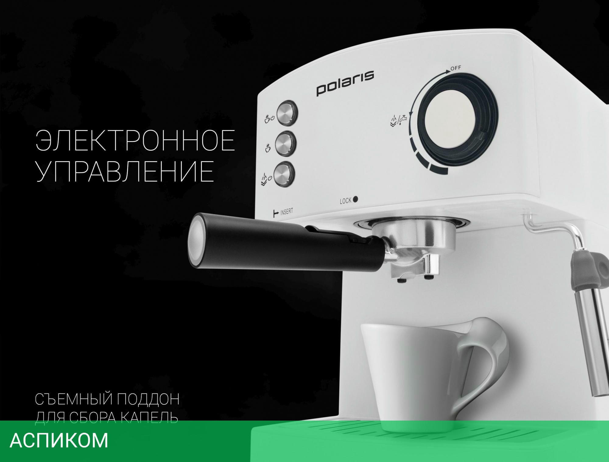 рожковая помповая кофеварка / бойлер / бытовое / от сети / 850.0 / молотый / да / пластик / белый