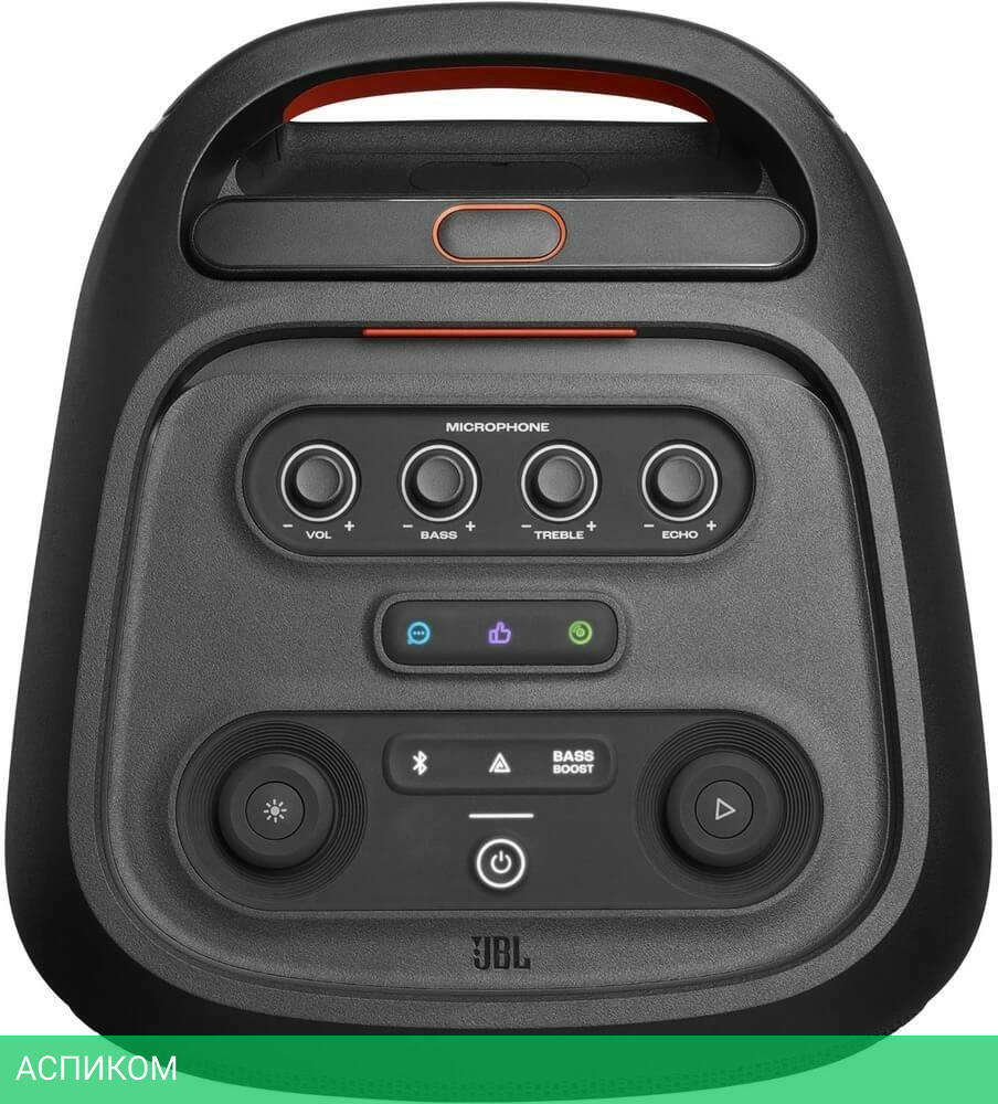 многоточечное подключение, поддержка Auracast, усиление звука с помощью искусственного интеллекта, защита от воды IPX4, встроенные колёса, телескопическая ручка