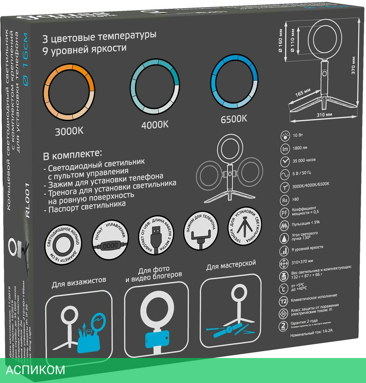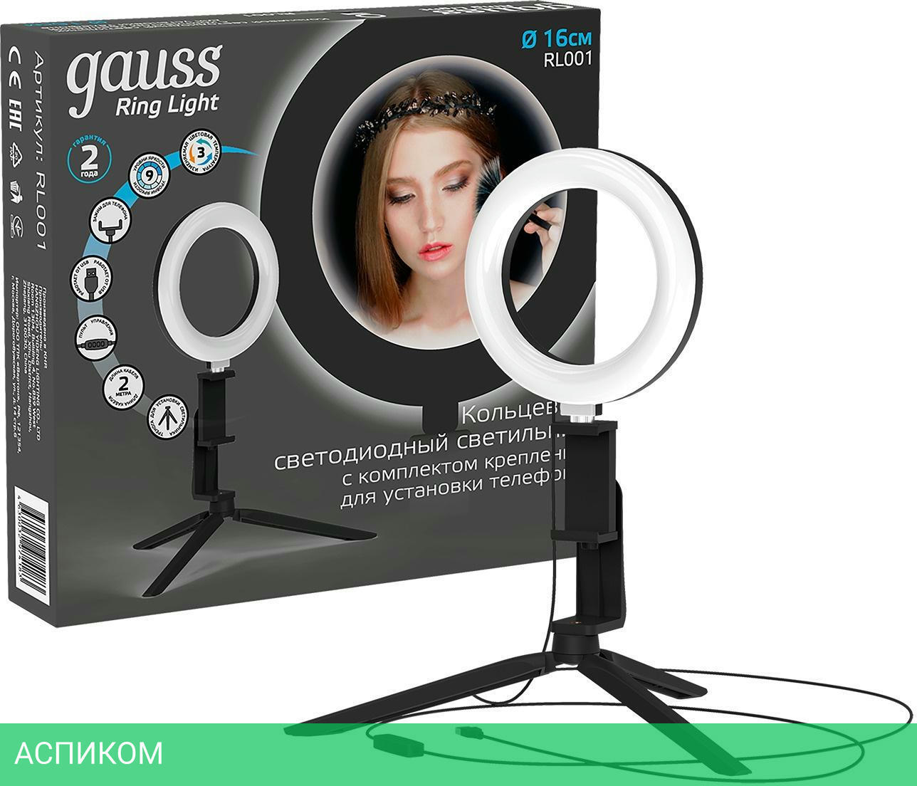 кольцевая лампа / черный / да