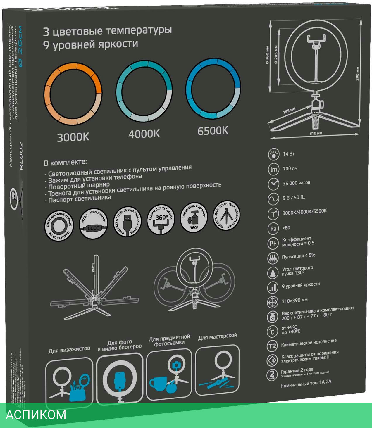 Светильник, зажим для смартфона, тренога, паспорт светильника