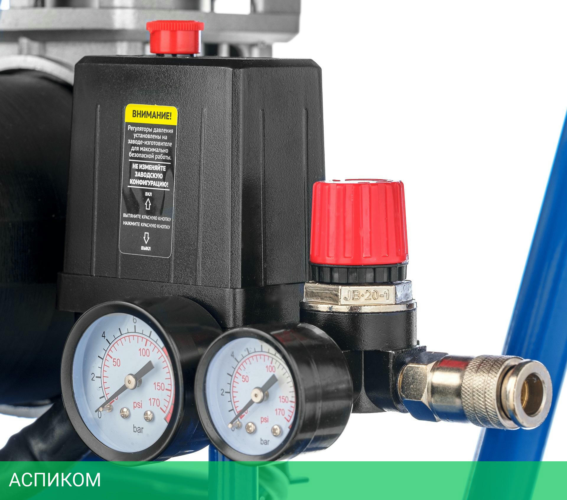 Компрессор, воздушный фильтр, транспортировочные колеса - 2 шт., руководство пользователя, упаковка.
