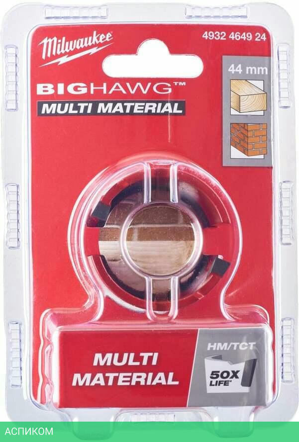рабочий диаметр: 44 мм; не предназначено для использования по твердым материалам таким как бетон, гранит, песчаник средней и высокой твердости, натуральный камень, кирпич с твердостью более 30 Н/мм²