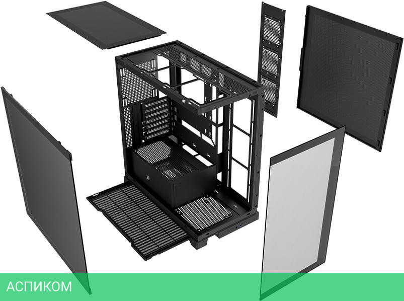 Midi Tower / черный / ATX; mini-ITX; micro-ATX / ATX / 180 / отсутствует / снизу / 2 / 1 / 7 / 425 / нет / нет / стекло; металл / да / нет