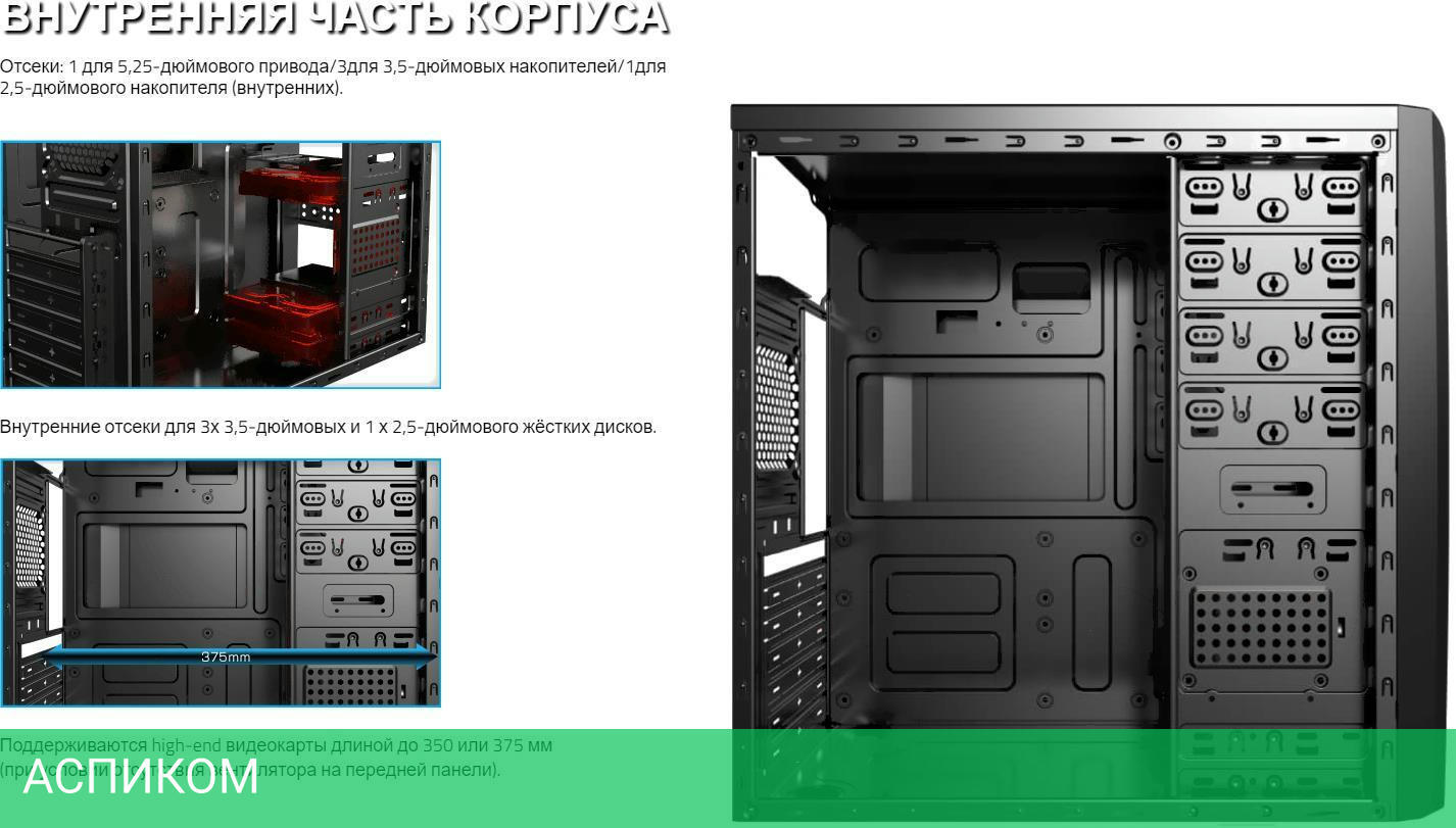 Midi Tower / ATX; mini-ITX; micro-ATX / ATX / 150 / черный / отсутствует / сверху / 1 / 3 / 7 / 375 / 2 / 1 / сталь / нет / нет