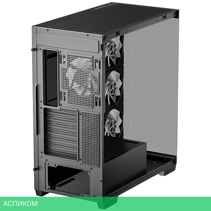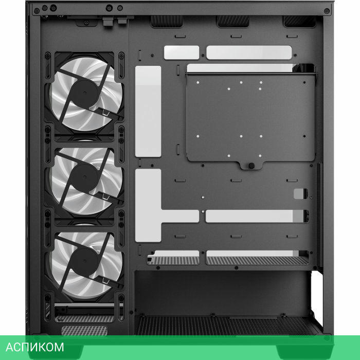 воздушное охлаждение: сверху 3х120мм/2х140мм, сбоку 3х120мм (предустановлено), сзади 1х120мм (предустановлено)/1x140мм, снизу 1x120мм, кожух БП 2x120мм, жидкостное охлаждение: сверху 120/140/240/280/360мм, сбоку 120/240/360мм, снизу 120/140м