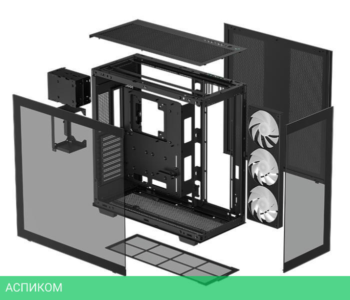 Midi Tower / черный / ATX; eATX; mini-ITX; micro-ATX / eATX / 132 / отсутствует / снизу / 3 / 2 / 3 / 480 / нет / 5 / сталь; пластик / да / да