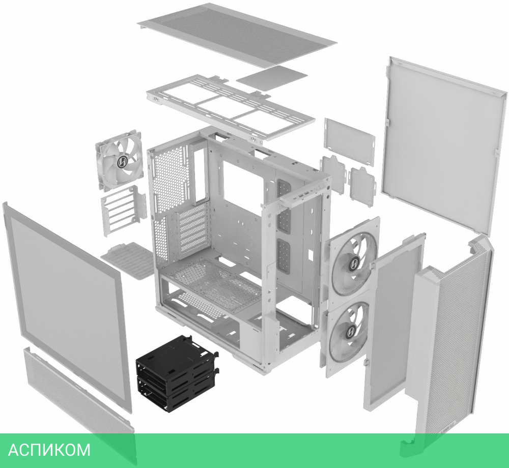 Midi Tower / белый / ATX; eATX; mini-ITX; micro-ATX / eATX / 180 / отсутствует / снизу / 6 / 2 / 7 / 392 / нет / 2 / сталь / да / нет
