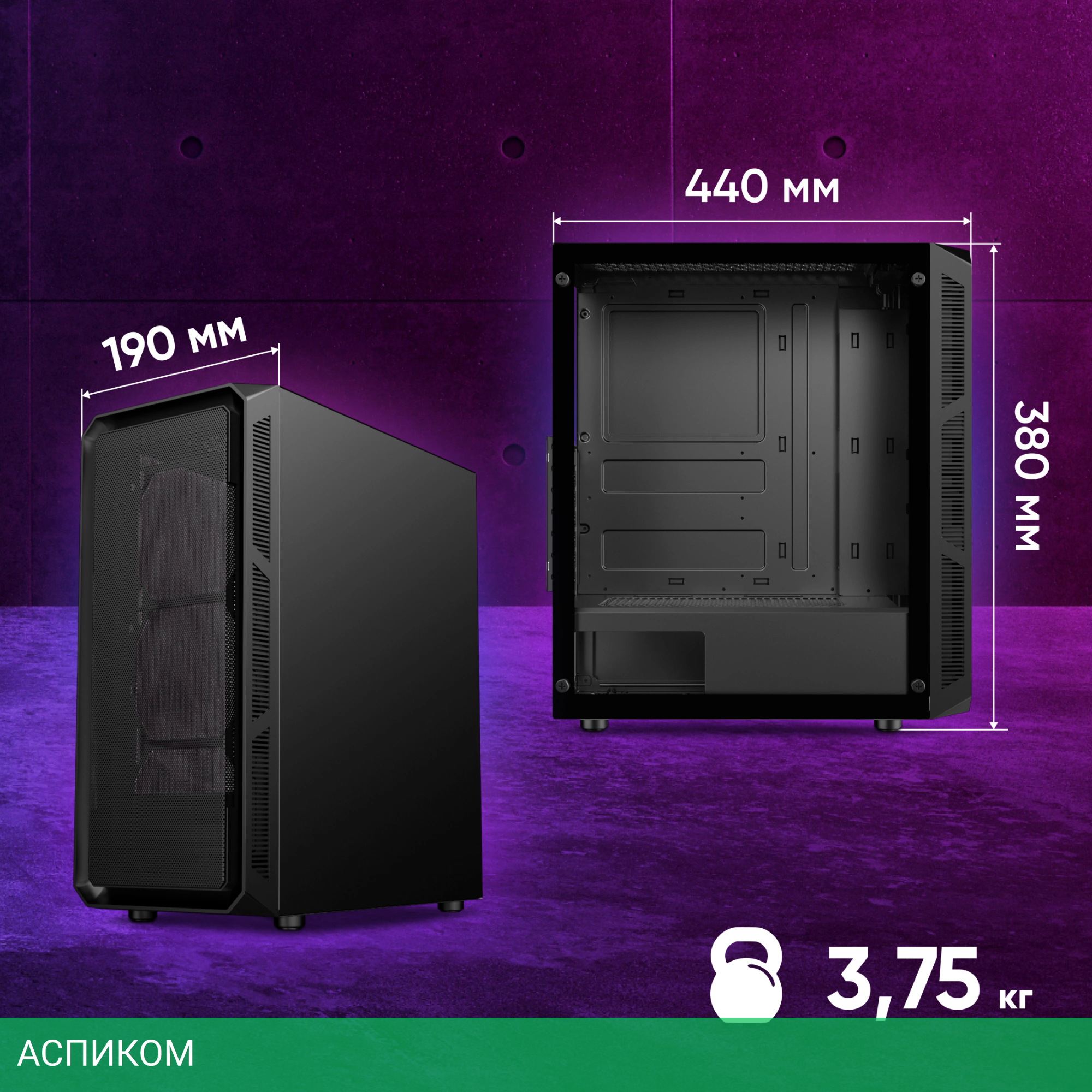 Midi Tower / черный / 165 / отсутствует / снизу / 2 / 2 / 7 / 310 / 1 / сталь / да