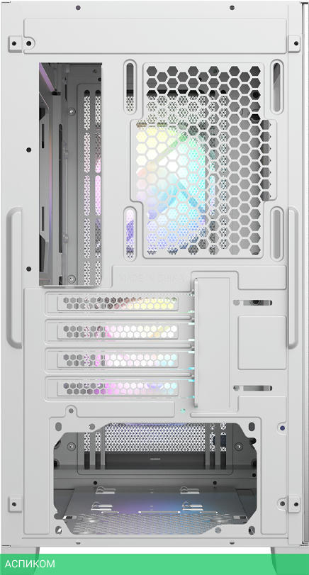Mini Tower / белый / micro-ATX; ITX / micro-ATX / 165 / отсутствует / снизу / 3 / 2 / 4 / 350 / нет / 2 / сталь; пластик; стекло / да / нет