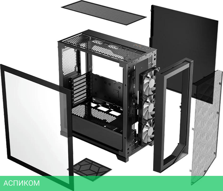 Midi Tower / черный / ATX; eATX; micro-ATX; ITX / eATX / 170 / отсутствует / снизу / 2 / 2 / 7 / 390 / нет / 2 / сталь; пластик; стекло / да / нет