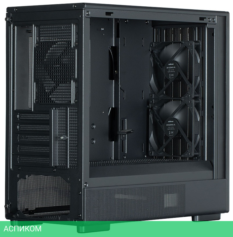воздушное охлаждение: спереди 2х140мм (предустановлено), сверху 3х120мм/2х140мм, сзади 1х120мм (предустановлено), снизу 3х120мм, жидкостное охлаждение: сверху 120/240мм, сзади 120мм