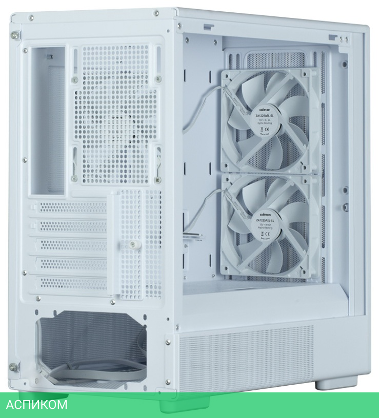 воздушное охлаждение: спереди 2х140мм (предустановлено), сверху 3х120мм/2х140мм, сзади 1х120мм (предустановлено), снизу 3х120мм, жидкостное охлаждение: сверху 120/240мм, сзади 120мм