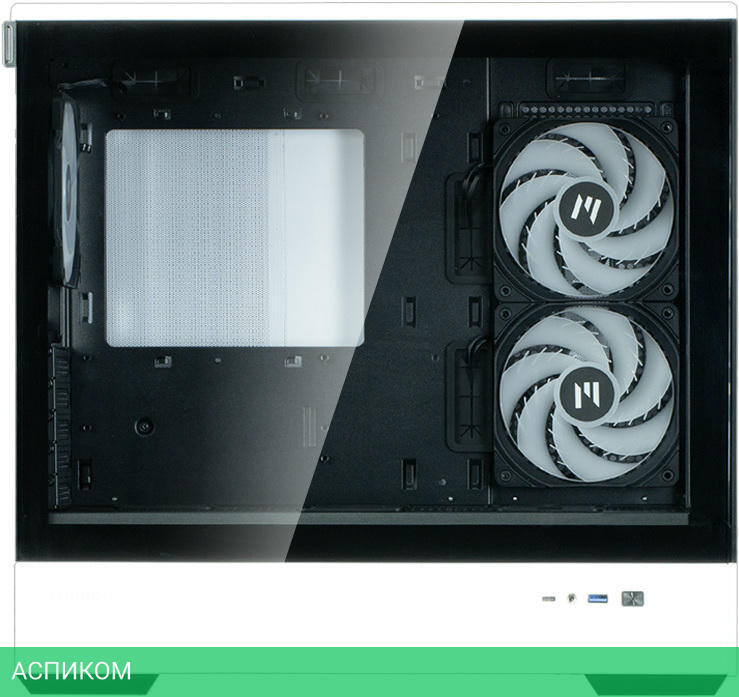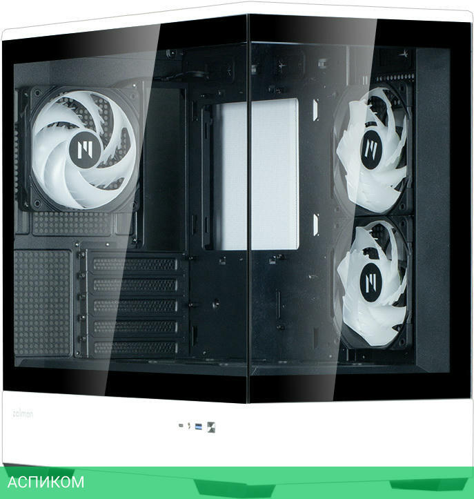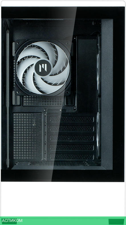 вентиляторы: сверху: 3 x 120 мм или 2 x 140 мм сбоку: 2 x 120 мм (в комплекте) сзади: 1 x 120 мм (в комплекте) или 1 x 140 мм снизу: 3 x 120 мм или 2 x 140 мм СЖО: сверху: 120/140/240/280/360 мм сзади: 120/140 мм