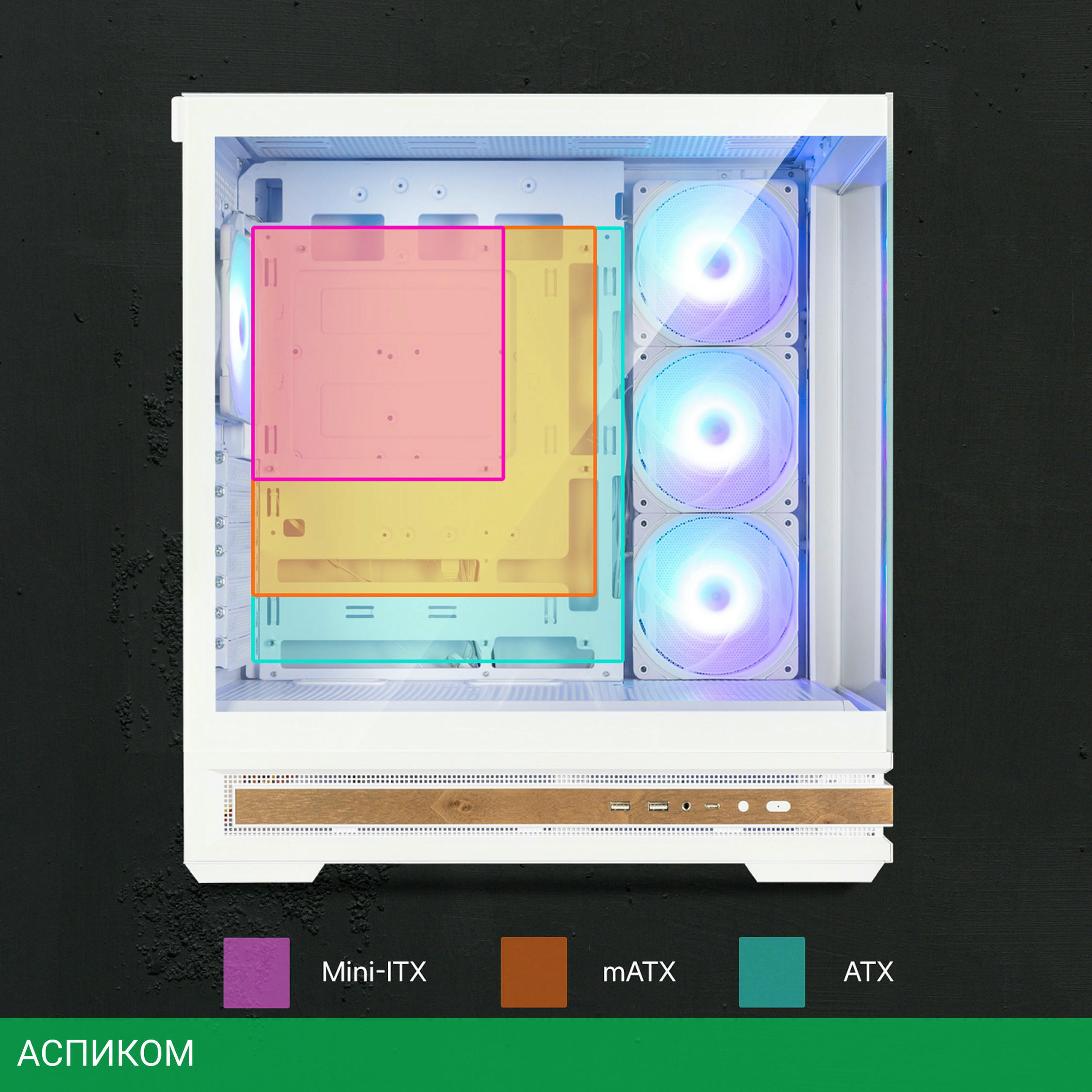 Midi Tower / белый / ATX; mini-ITX; micro-ATX / ATX / 0 / отсутствует / снизу / 1 / нет / 7 / 420 / нет / 2 / сталь; пластик; стекло / да / нет