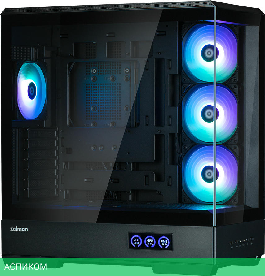 сбоку 3х ZM-AF120R ARGB Fan и сзади 1х ZM-AF120 ARGB Fan