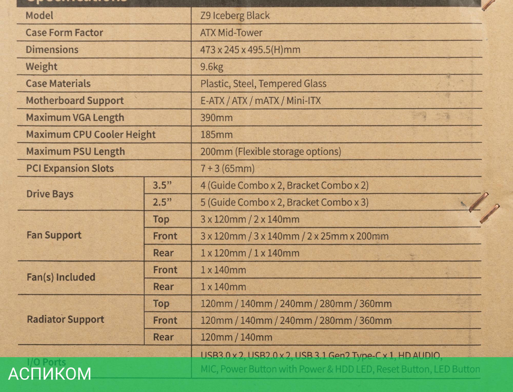 Midi Tower / белый / ATX; micro-ATX; eATX; mini-ITX / eATX / 185 / отсутствует / снизу / 1 / 2 / 10 / 390 / 2 / 2 / стекло; пластик; сталь / нет