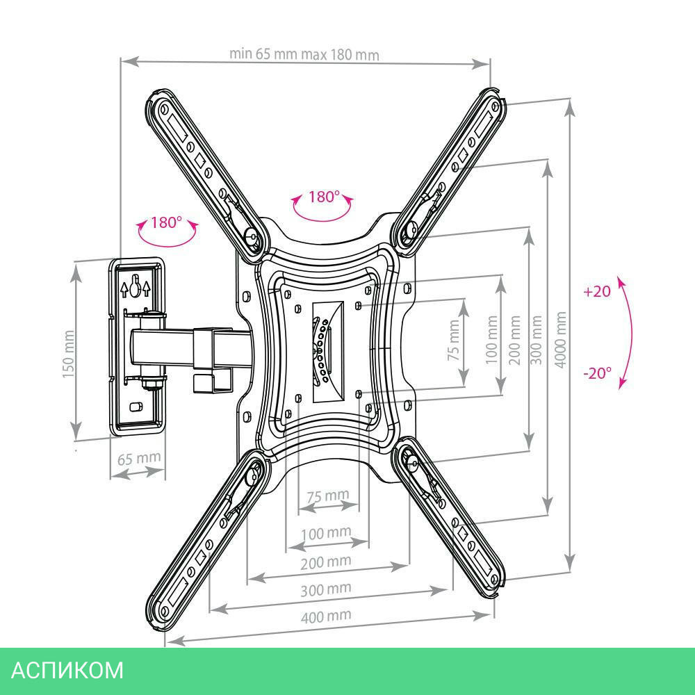 для телевизора / черный / настенный / 26.0 / 55.0 / 10 / 180.0
