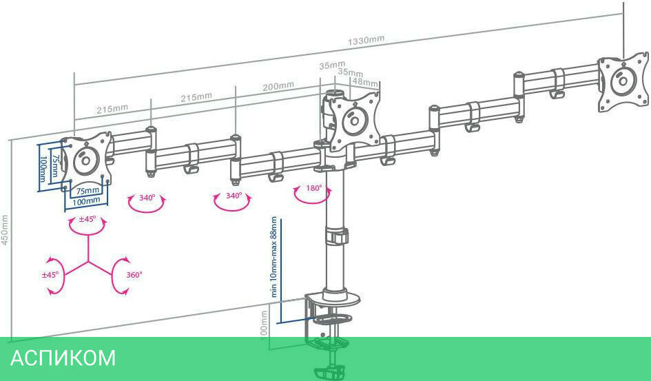 для монитора / настольный / 15.0 / 32.0 / черный / 45 / 360.0