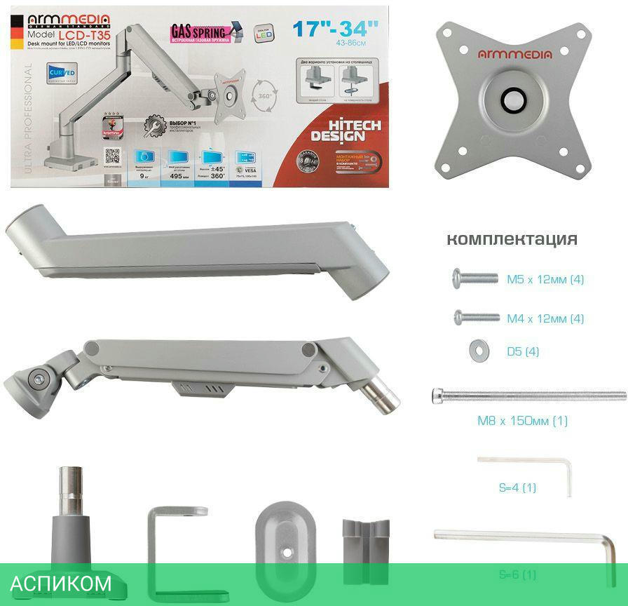 для монитора / настольный / 17.0 / 34.0 / серебристый / 45 / 360.0