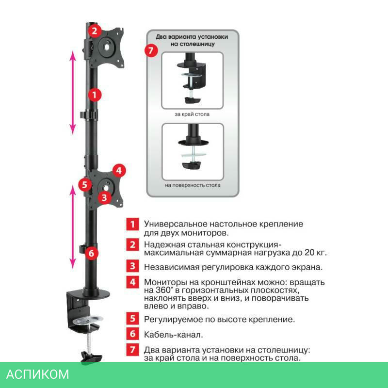 для монитора / черный / настольный / 15.0 / 32.0 / 45 / 45.0