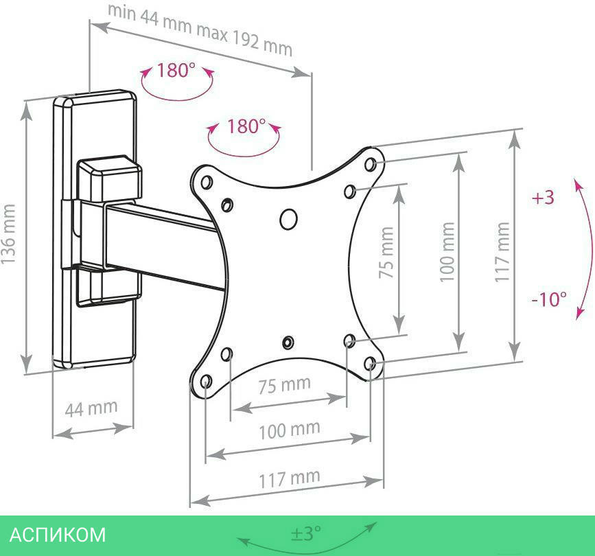 для телевизора / черный / настенный / 10.0 / 32.0 / 10 / 90.0