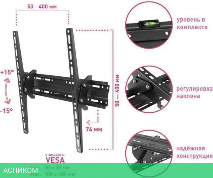 для телевизора / настенный / 26.0 / 55.0 / 12 / черный